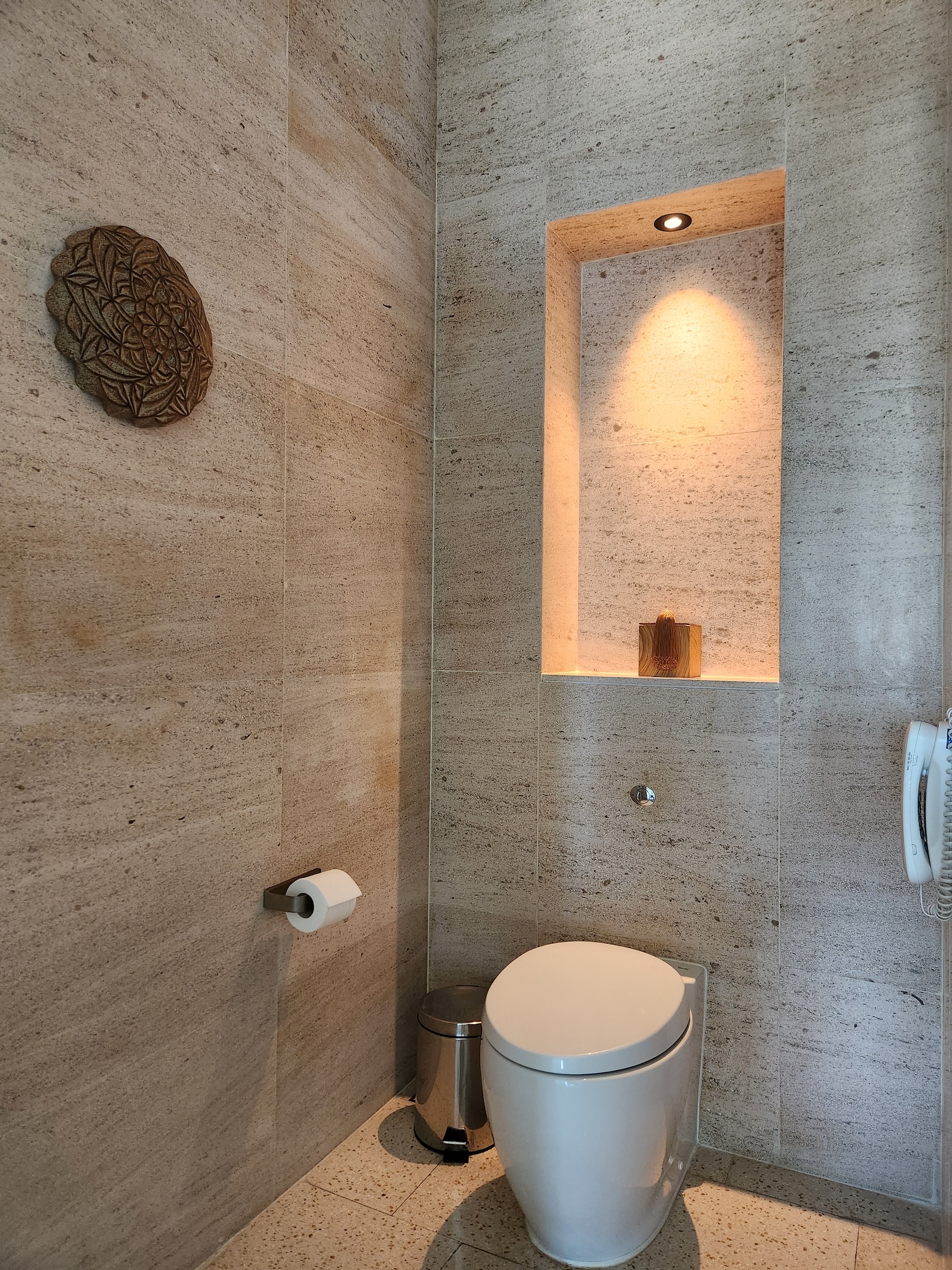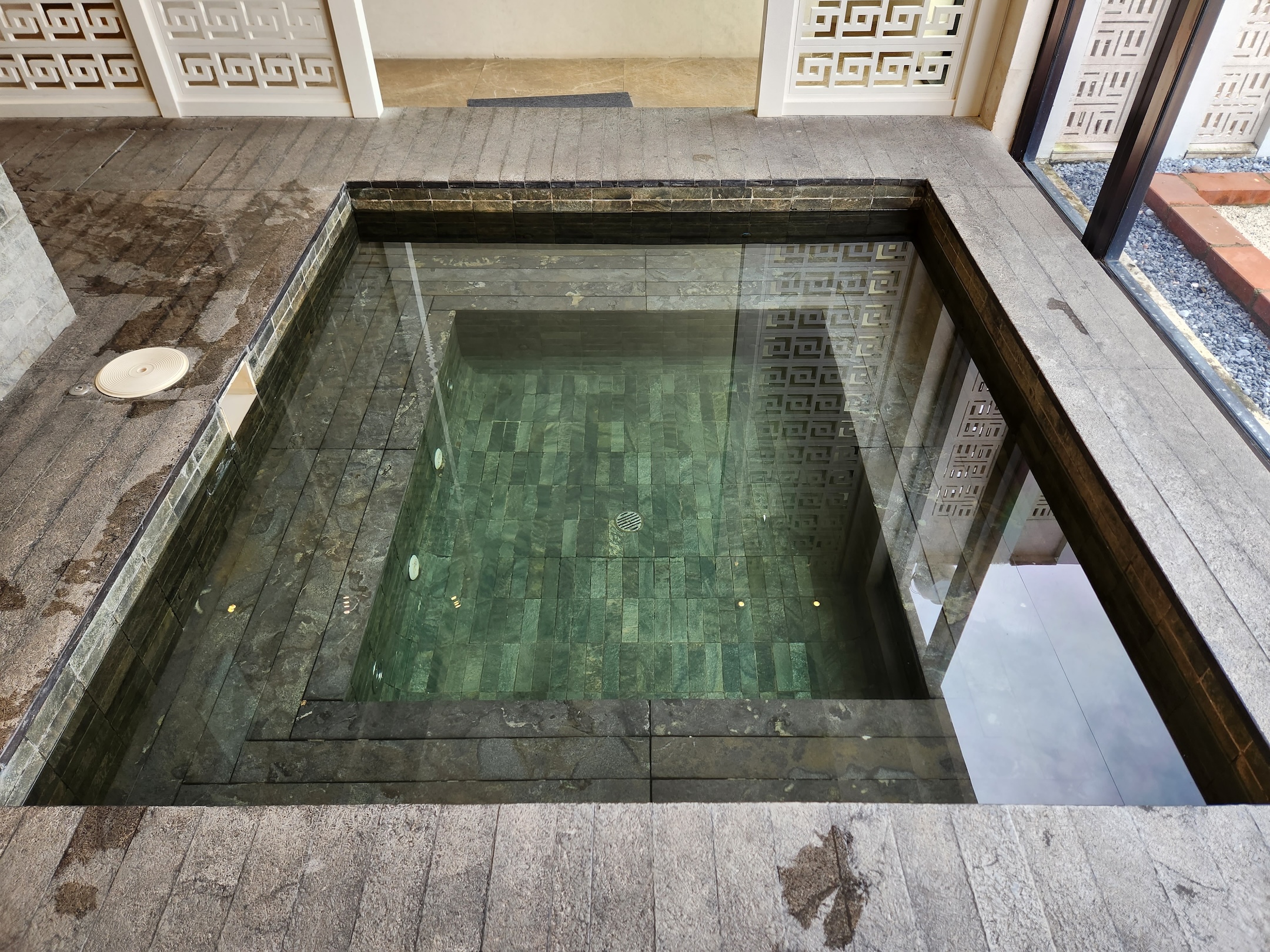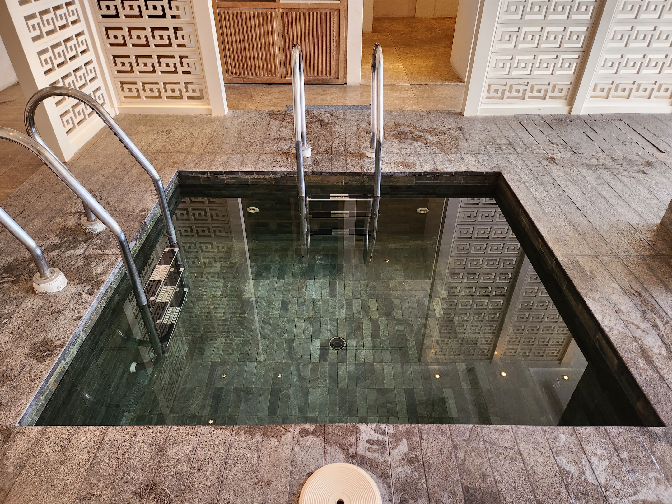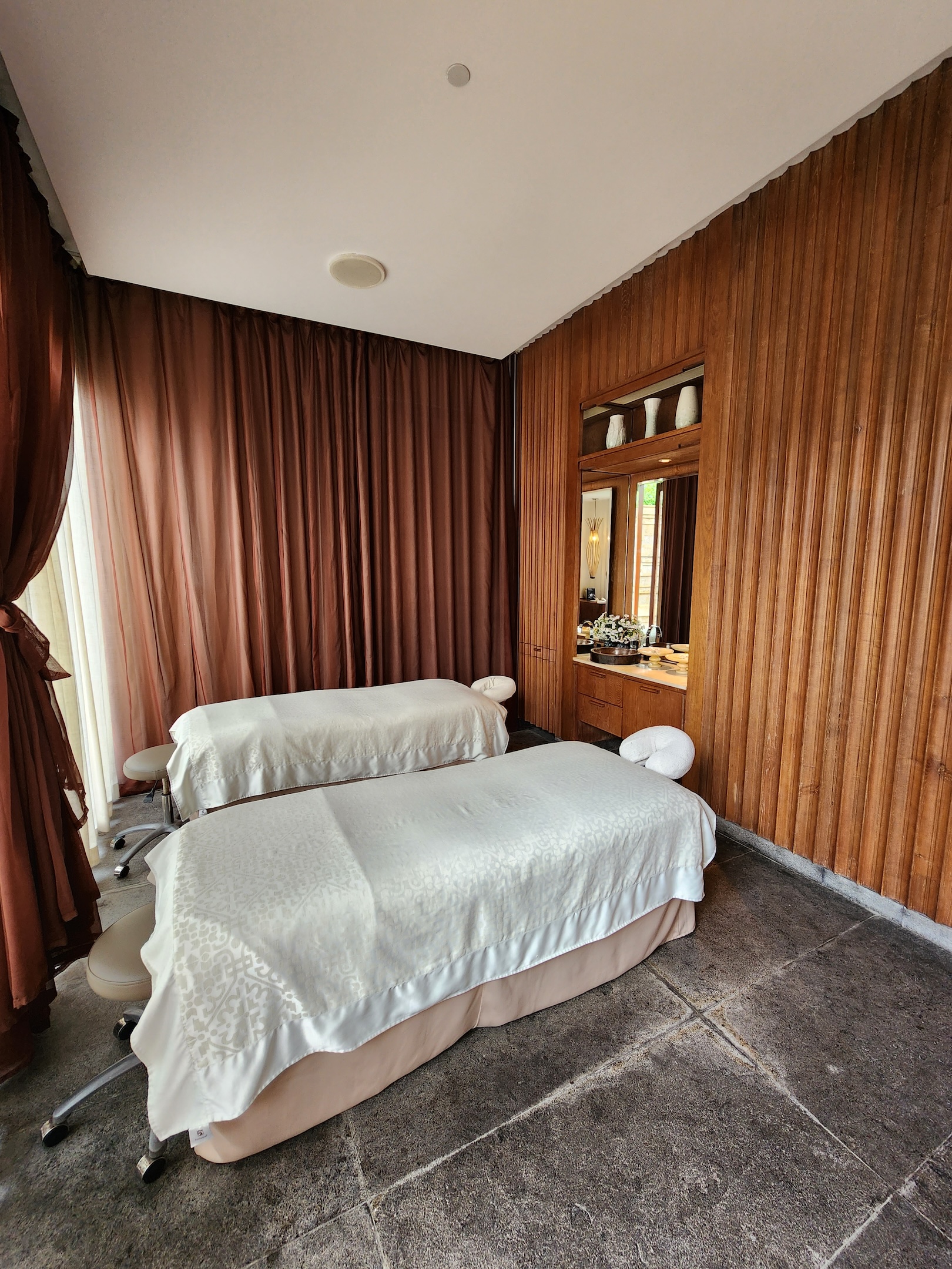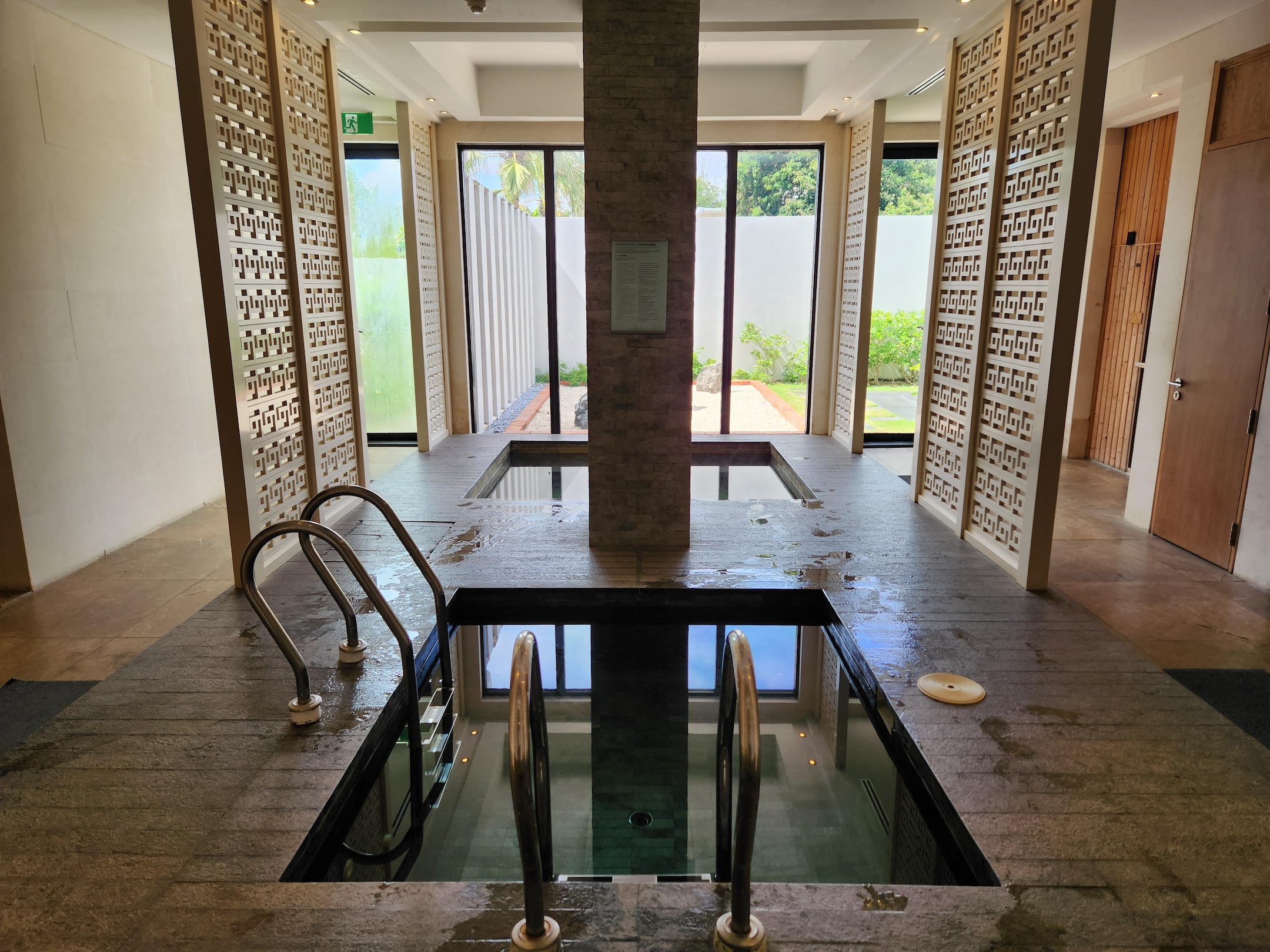 其實在渡假村外面有很多可以按摩的地方,而且收費也相對便宜,不過我真心理解有些讀者若是來渡假的話,可能某幾天只想留在渡假村內放空,因此我也特地到了這個芳療中心來拍照記錄一下。這裡除了有「三溫暖」的設施,可以使用蒸氣室/桑拿 (Sauna) 室/按摩水池之外,也有提供付費的按摩服務,不過我沒有特地留意在這裡按摩的價格,因為通常會比渡假村外面的店家來得貴,但是我依然還是很盡責的,拍一些相關設施的照片來分享一下。