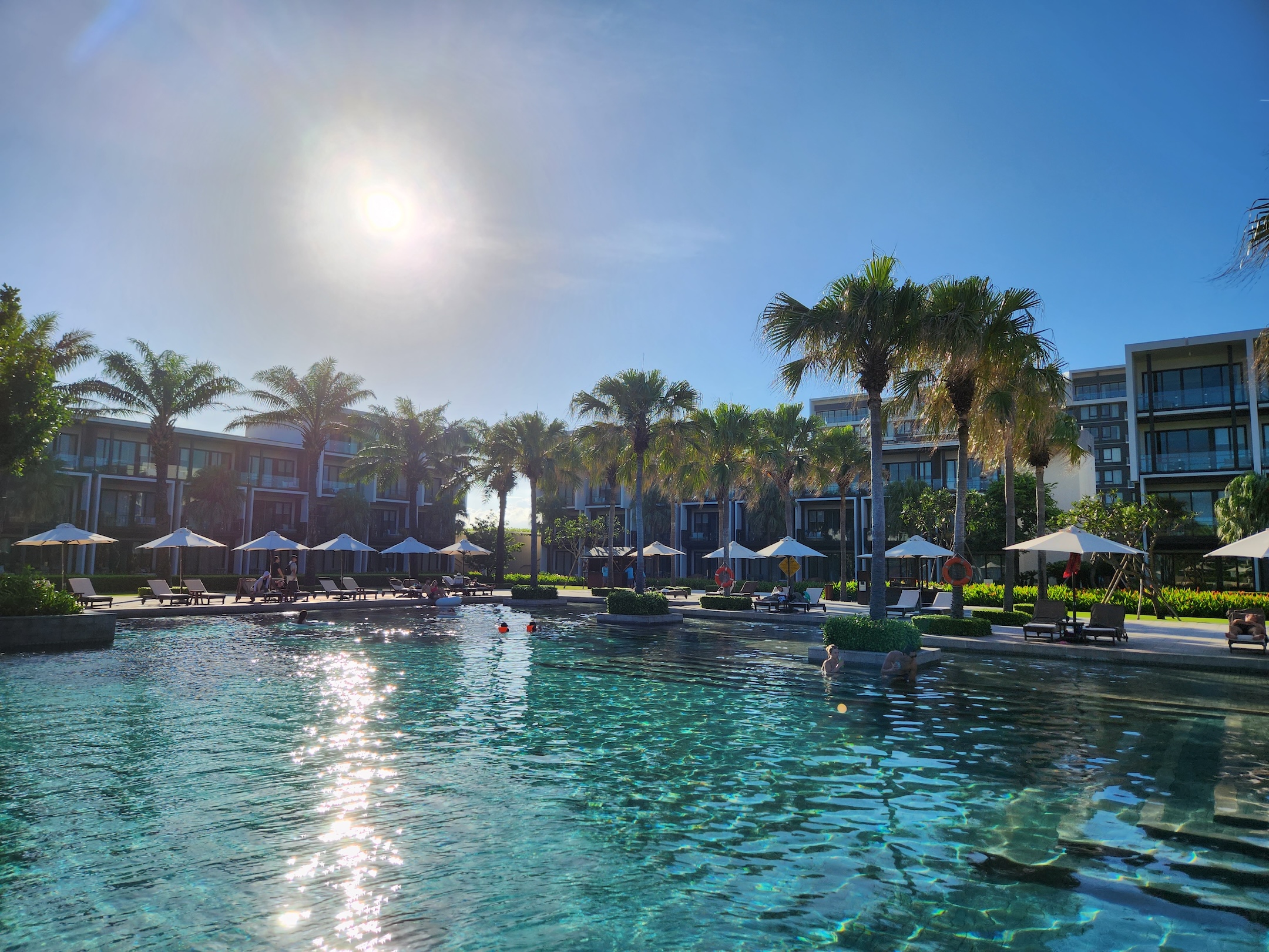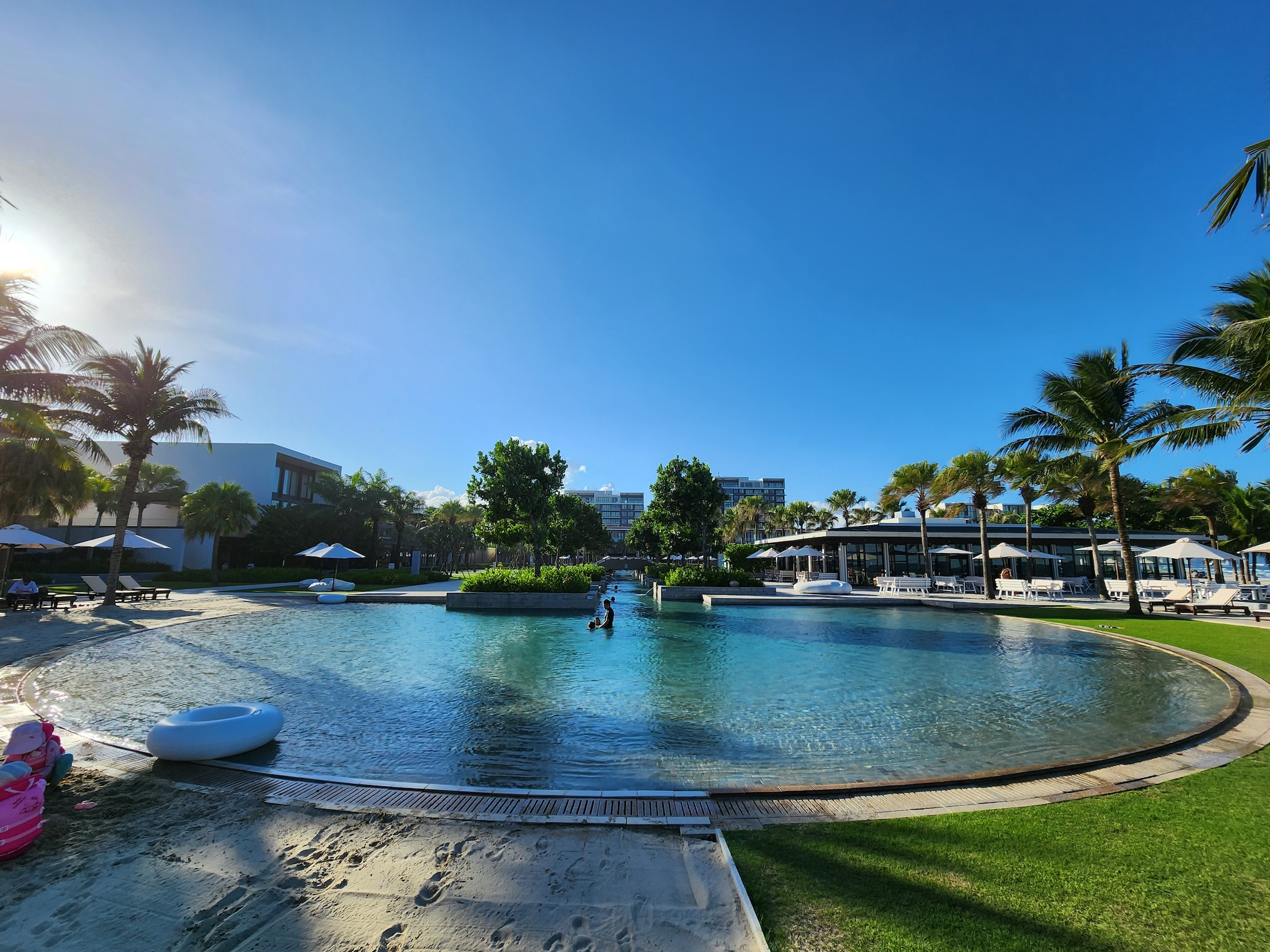 而繼續往海灘的方向移動,就可以看到不限年齡使用的游泳池,比起成人專用游泳池來的大很多,也比較適合有帶小朋友的家庭旅客們玩水。不得不說,越南真的是一個一年到頭都很熱的地方,所以能夠在游泳池泡泡水降個溫,還是相當不錯的!