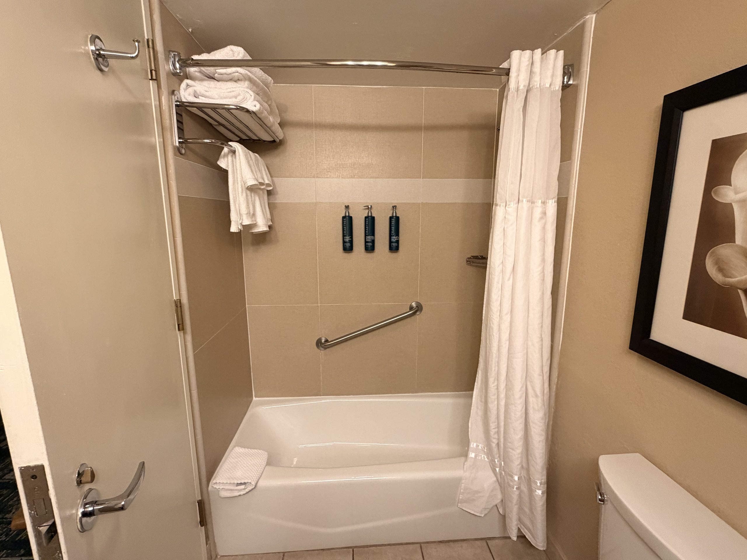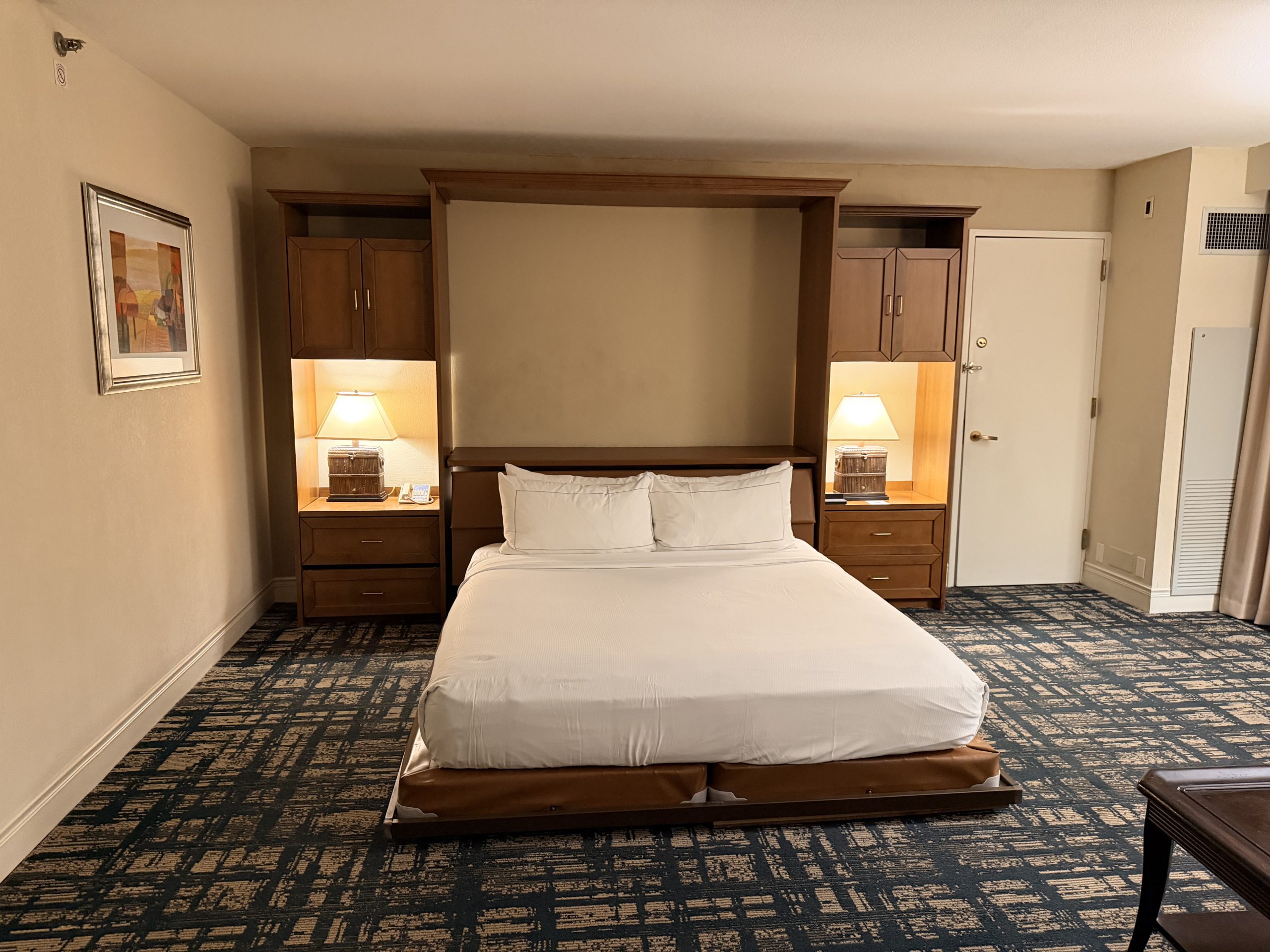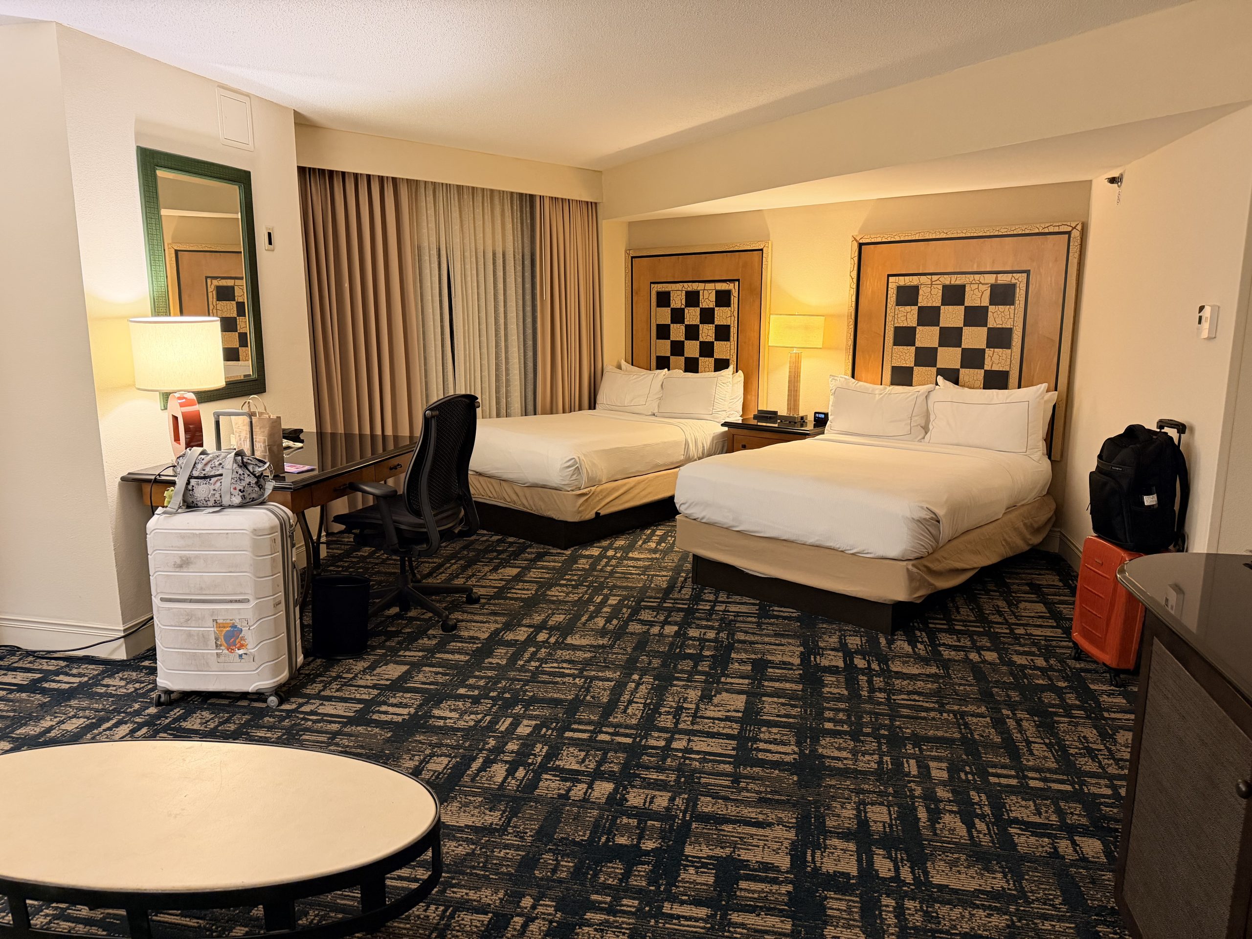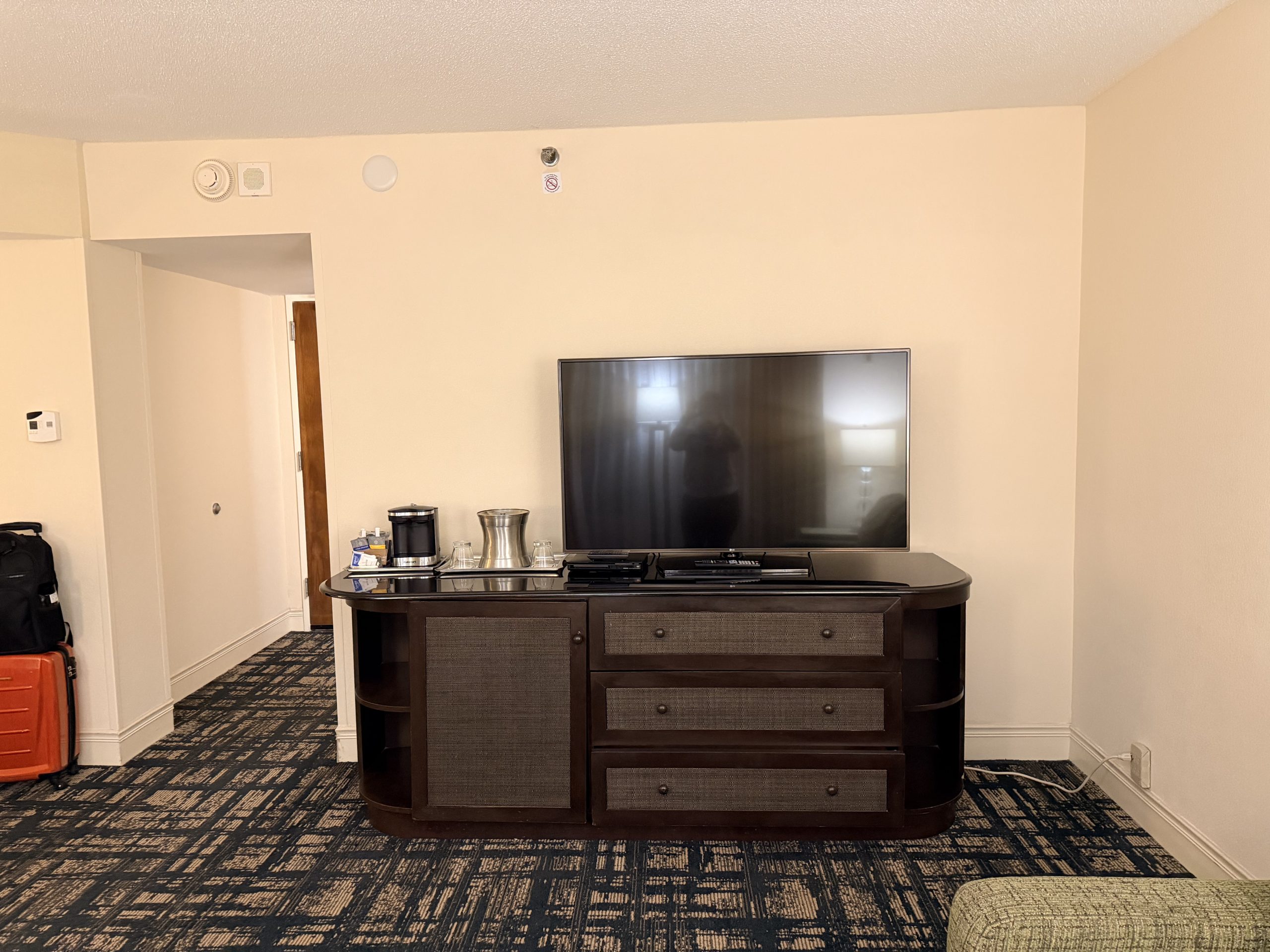 每次來奧蘭多的樂園玩樂時,總是覺得時間很快就過去了,這間酒店的房間有些老舊,布織品有破損,設施也顯得過時,但是因為這次透過「分時渡假」說明會的關係,加上信用卡的福利,所以等於免費入住!除此之外,每天入住還有餐飲退額可以使用,不來入住一下,總感覺對不起自己的錢包。至於我自己會不會推薦這間酒店?我認為如果不介意參加漫長的說明會,也不追求完美的住宿體驗,只是需要在樂園內玩累了之後,有個舒服的地方可以休息,那麼這家酒店絕對是個可以考慮的選擇。