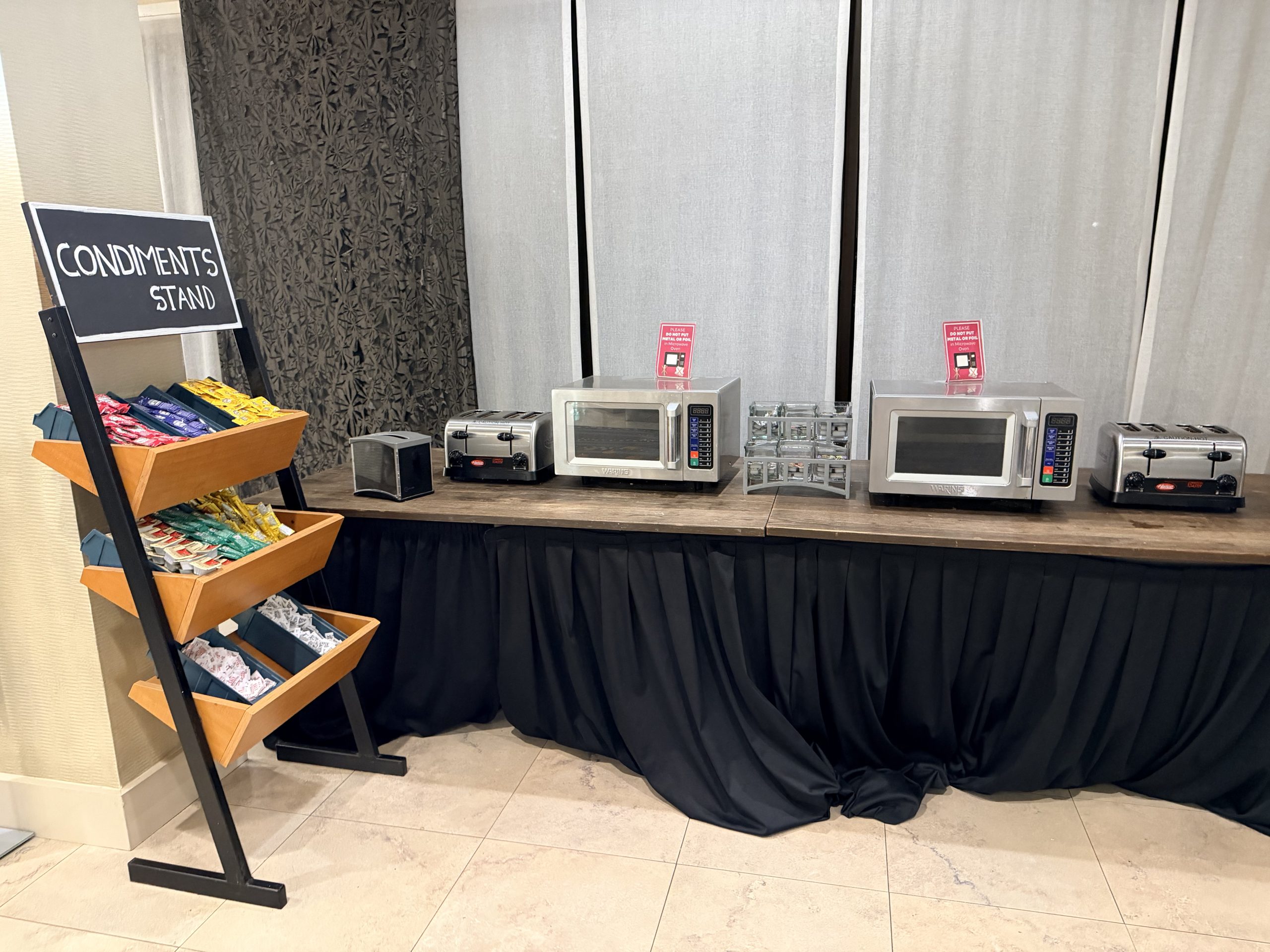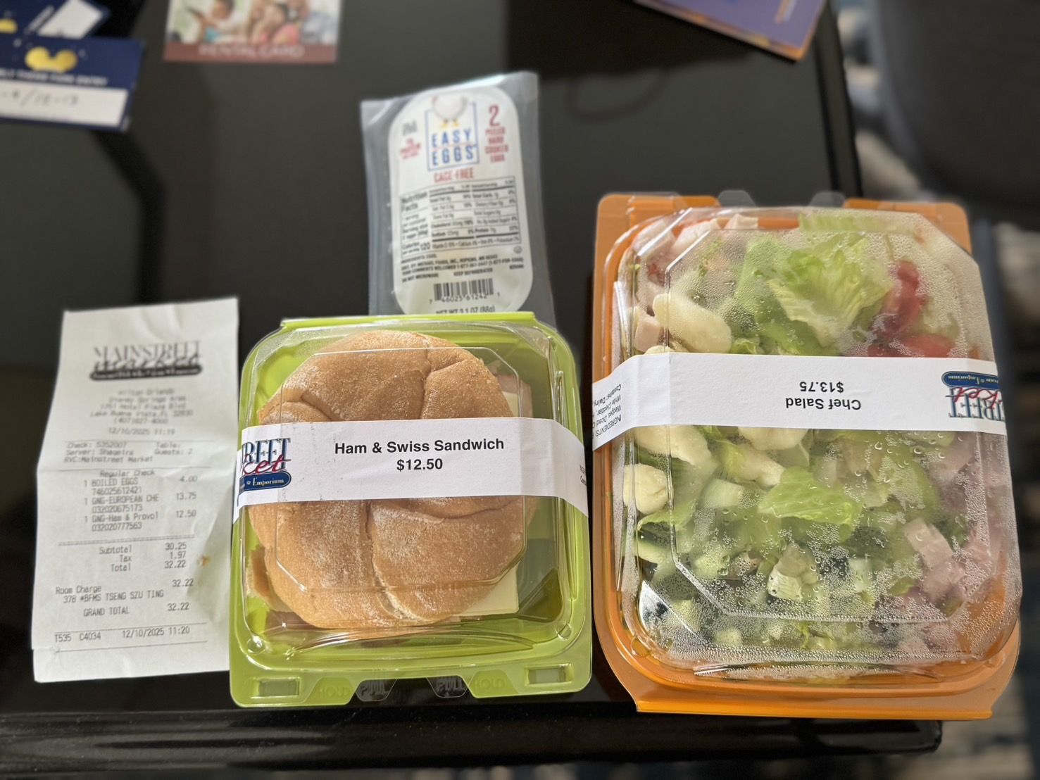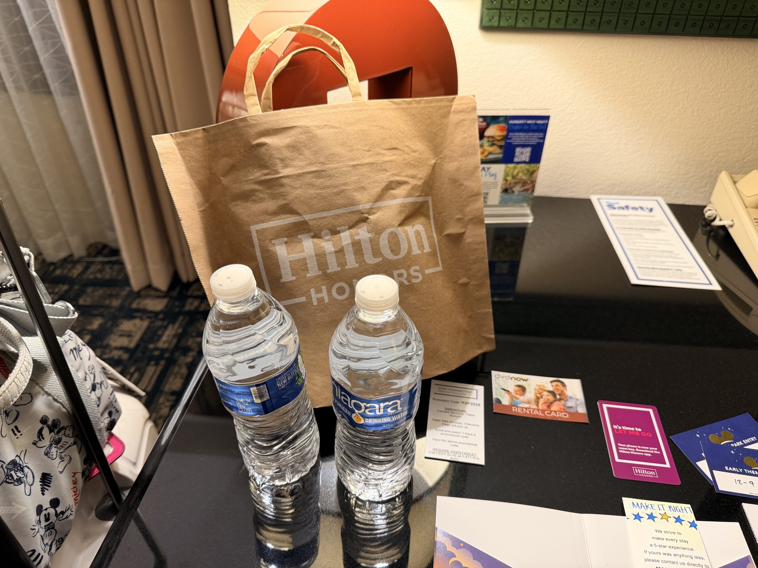 酒店有幾家餐廳可供選擇,而持有希爾頓鑽石 (Diamond) 會籍的房客,可獲得每日最多兩人,每人每日$15美金的餐飲退額。因為每天都前往樂園遊玩,所以正好可以用這個餐飲退額,前往酒店的小商店購買三明治/點心帶到園區內食用。