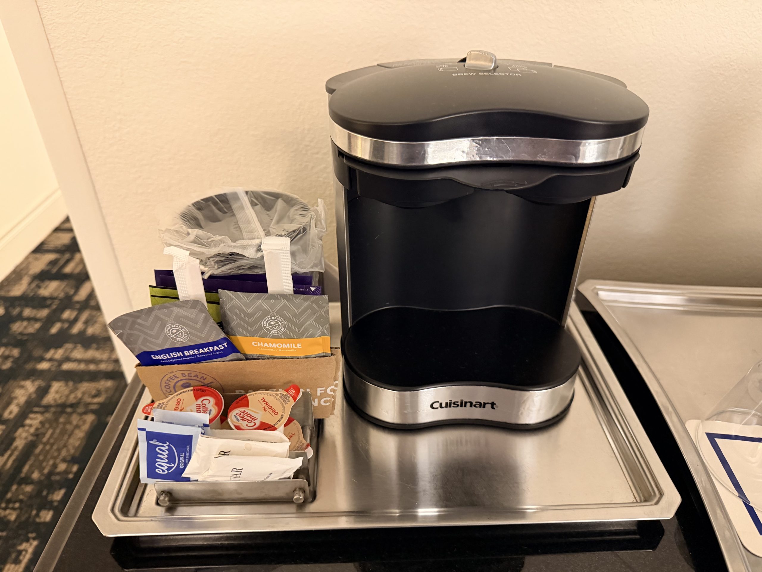 電視櫃上提供最基本的傳統袋裝咖啡包與茶包