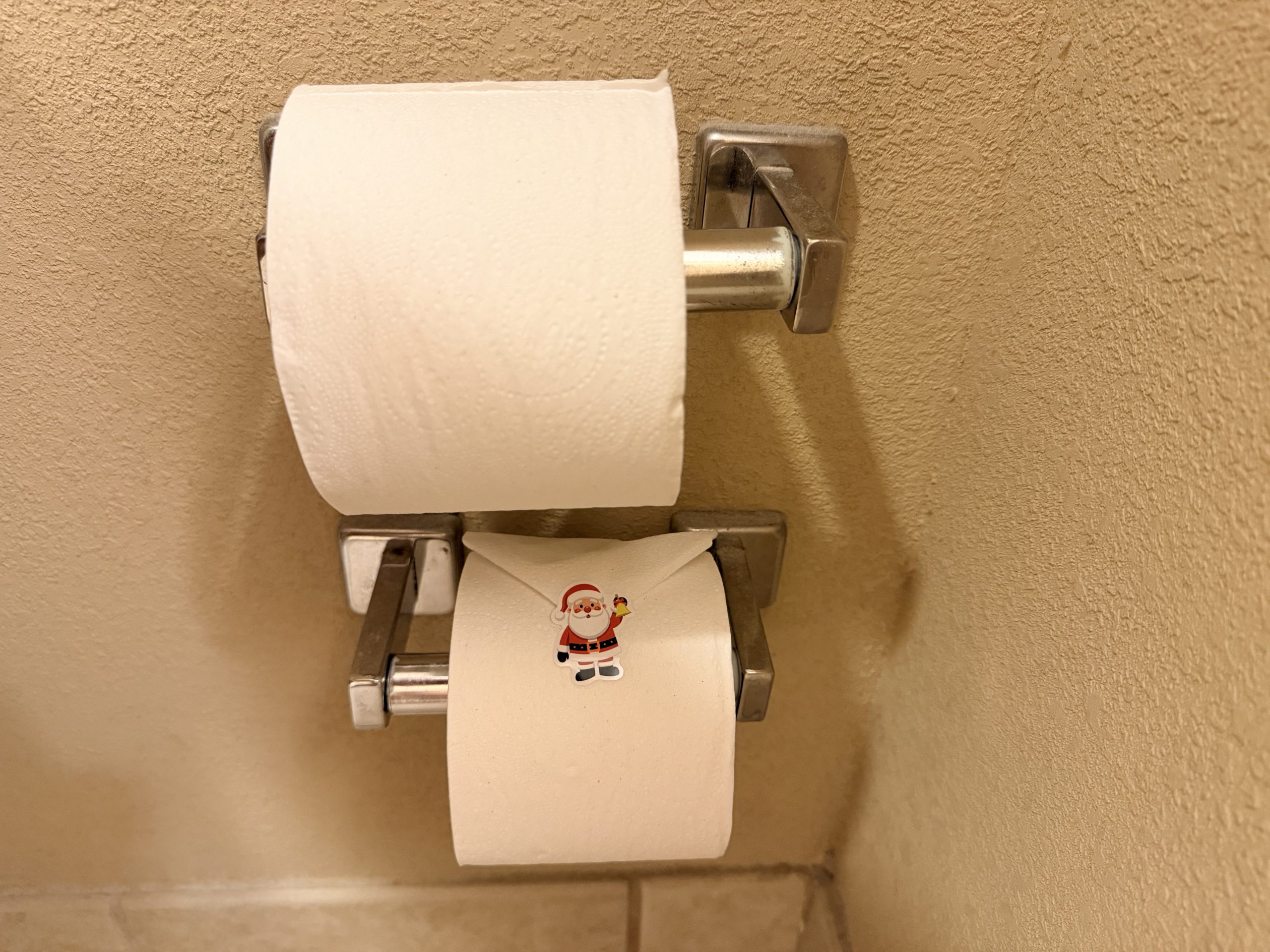 因為適逢聖誕節假期的關係,衛生紙上還貼了小小的聖誕老人貼紙,挺可愛的