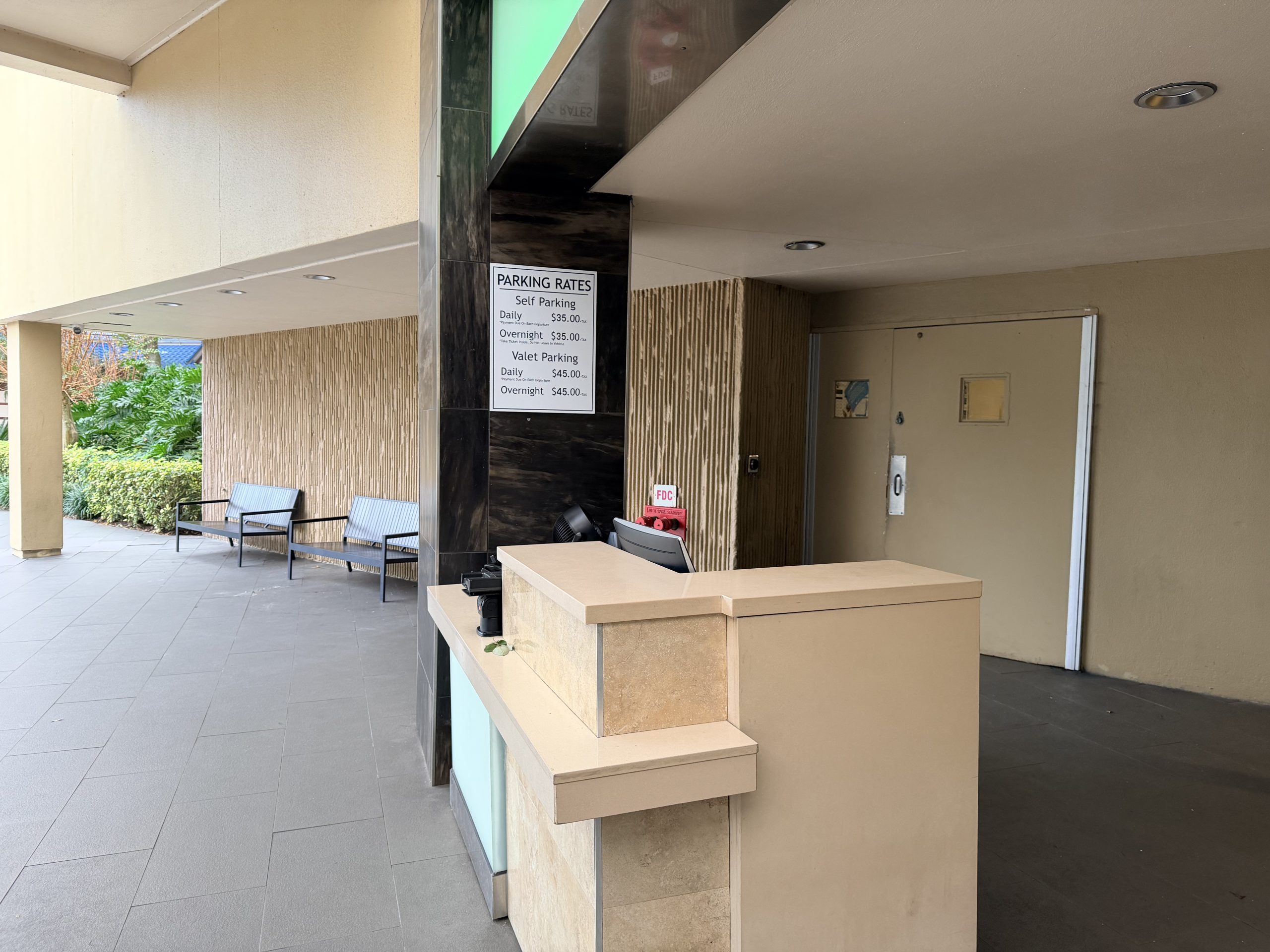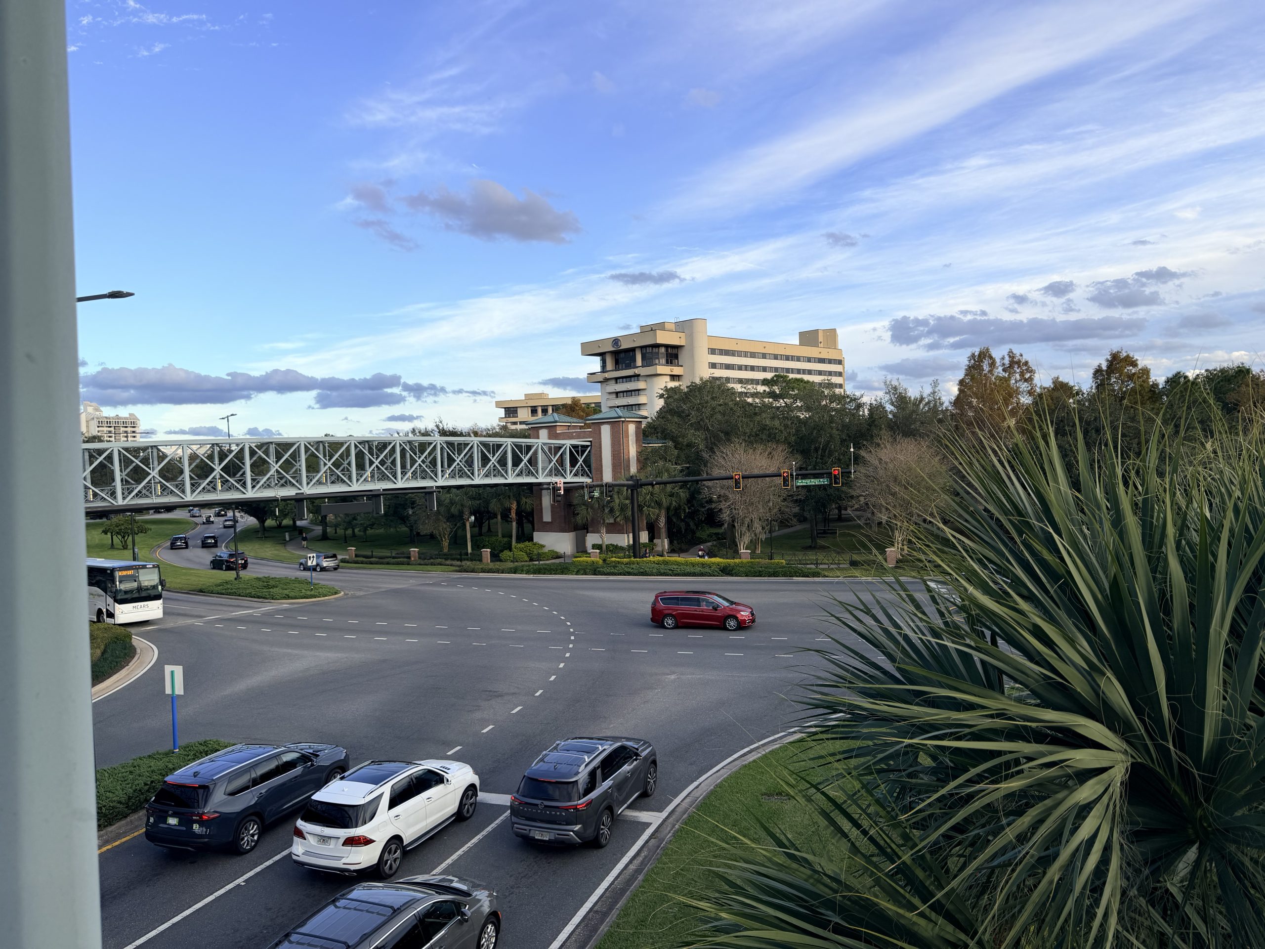 抵達這次要分享的「奧蘭多布埃納維斯塔湖迪士尼泉碼頭區希爾頓酒店」時,車子轉進酒店入口,迎面而來的是一棟有著明顯90年代建築風格的建築物,這間希爾頓酒店其實是奧蘭多「布埃納維斯塔湖」(Lake Buena Vista) 地區較早期開發的酒店之一,最初建於1980年代末期,當時正值迪士尼樂園快速擴張的黃金時期。以前往「迪士尼世界」樂園的方便度來說,這間酒店每個小時都有一班接駁巴士抵達樂園內的各個園區,而且因為屬於迪士尼世界樂園所認證的官方合作酒店,因此可以享受「提早進入園區」的福利。酒店內的自助停車費用為一晚$35美金,若需要「代客泊車」的話,一晚則為$45美金的費用。