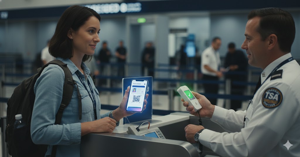 在運輸管理安全局的行李安全檢查關卡,使用「數位護照」非常簡單,如下所示: