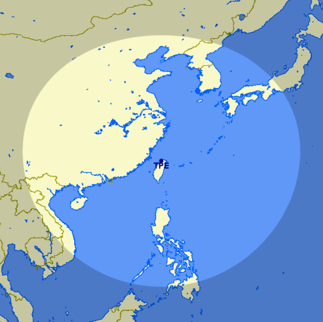 其實澳洲航空的哩程,也是可以使用於兌換我們讀者們熟知的中華航空喔!尤其是從台北出發,1,200 miles以下的飛行距離的兌換,都還算可接受(單程經濟艙16,100 points以下,單程商務艙31,500 points以下)。因此由下圖可以看到,這個飛行距離下的範圍,可前往的地點包含了中國部分城市/韓國/日本部分城市/越南/菲律賓等等,尤其是在美國的朋友,可能手上平常沒有特別累積中華航空的哩程,但若是剛好有需要搭乘中華航空,往返亞洲境內的城市的話,使用澳洲航空的哩程兌換也是可以考慮的!