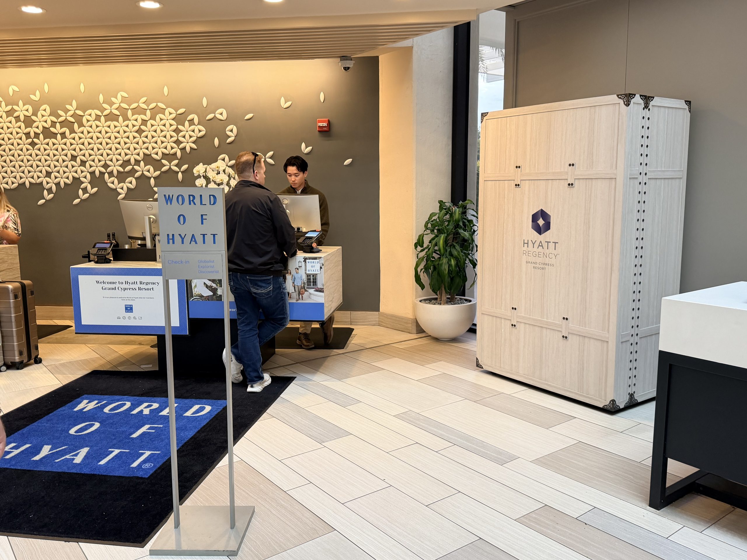 在2025歲末再訪奧蘭多,前幾晚行程住在奧蘭多布埃納維斯塔湖迪士尼泉碼頭區希爾頓酒店 (Hilton Orlando Buena Vista Palace Disney Springs Area)(點我),而剛好手上有一張快過期的凱悅酒店集團 (Hyatt) 的「等級1~4」單晚住宿券的關係,所以在奧蘭多的最後一晚,就決定更換到這間屬於凱悅集團「等級4」的「格蘭塞浦路斯凱悅渡假村」(Hyatt Regency Grand Cypress Resort) 來入住。這間渡假村離前幾晚入住的希爾頓酒店不遠,不過渡假村本身不屬於與「迪士尼世界」(Disney World) 樂園合作的住宿選擇,所以接駁車相對少,但廣達1,500英畝的廣闊腹地,包含了人造湖景與高爾夫球場,看起來還是很吸引人,算是個適合放鬆渡假的好選擇。