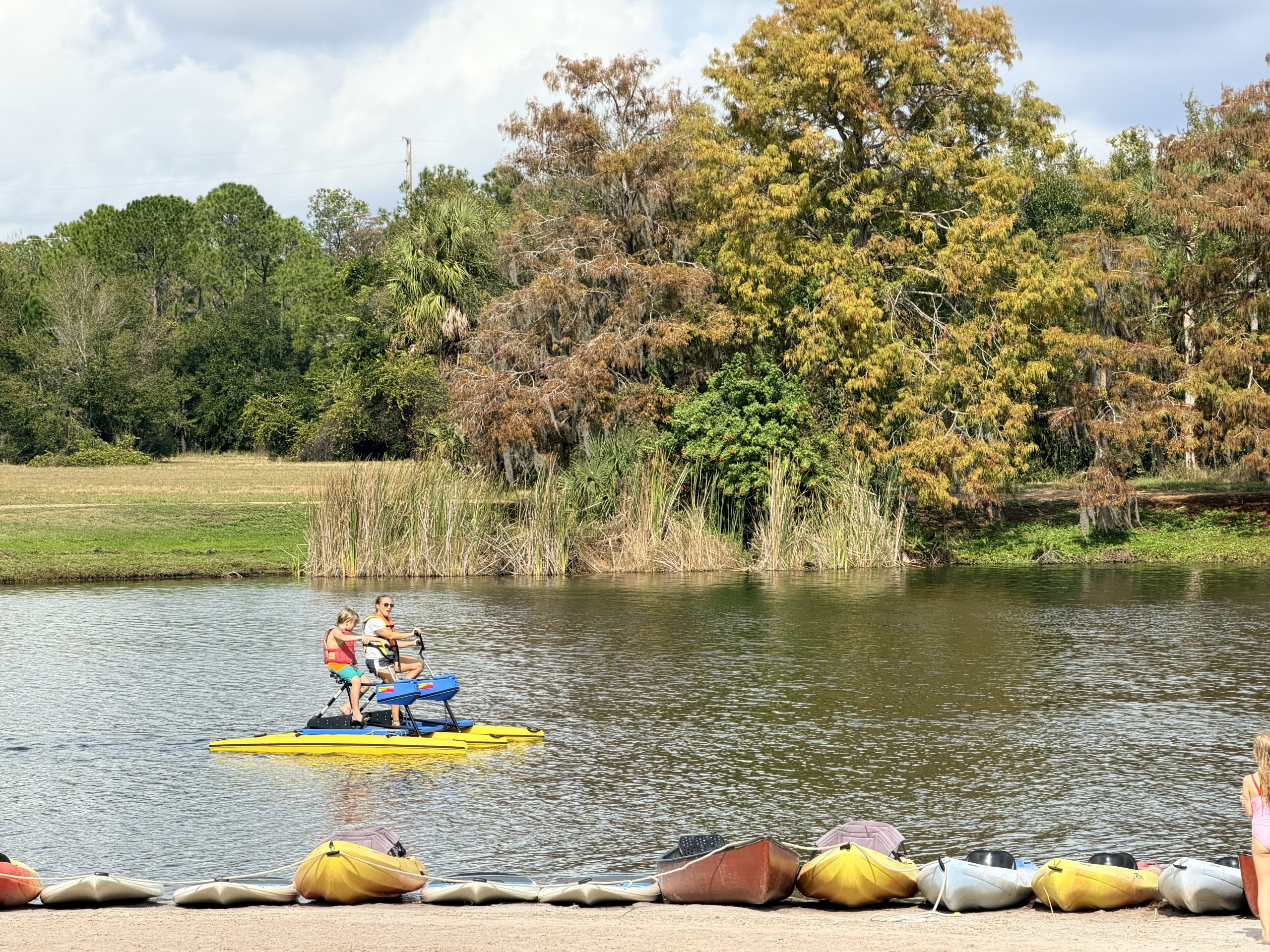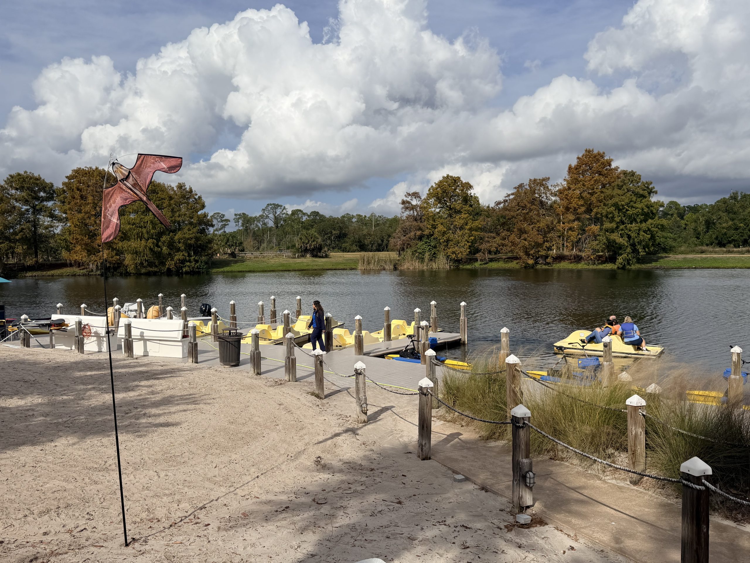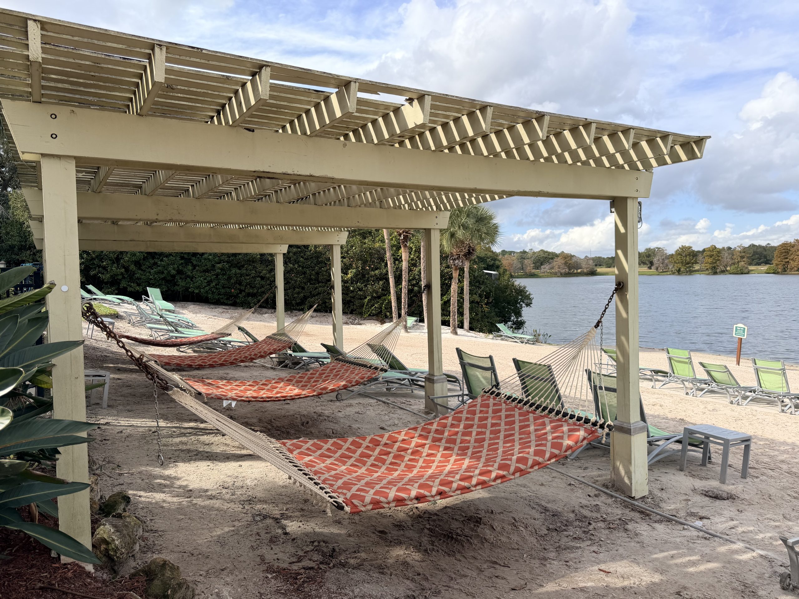 這邊有個人工湖泊,旁邊還有個小沙灘,同時附近還有擺放數個舒服的吊床可以休息。除此之外,這裏還有腳踏船與水滑板之類的器材可以借用。