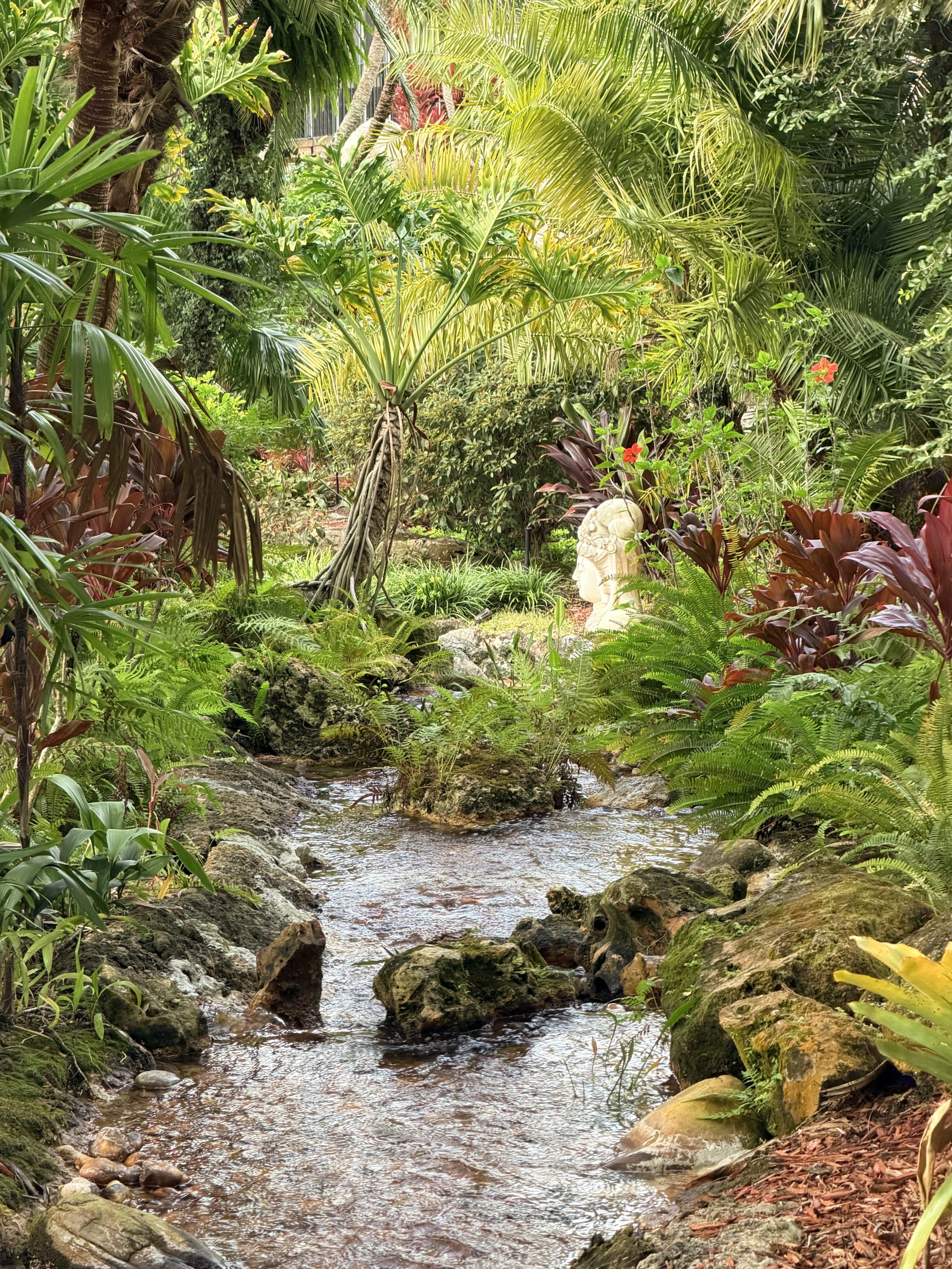 花園內有個佛頭,禪意十足