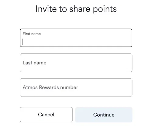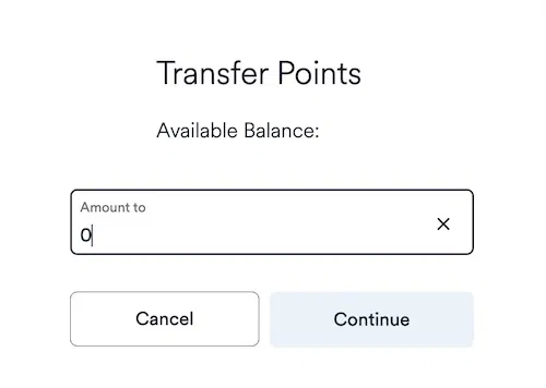 (8) 接下來就可以開始進行轉移哩程的步驟,在前面的篇幅有提到,這個轉移的功能是「雙向」的,也就是會員與「家庭」網路的管理者,可以互相轉移哩程。若需要轉移哩程的話,請前往「Share Points」的頁面,選擇要轉移哩程的會員後,就會看到如下的畫面,輸入想要轉移的哩程數量。決定好要轉移的數量之後,請接著點擊「Continue」的選項。