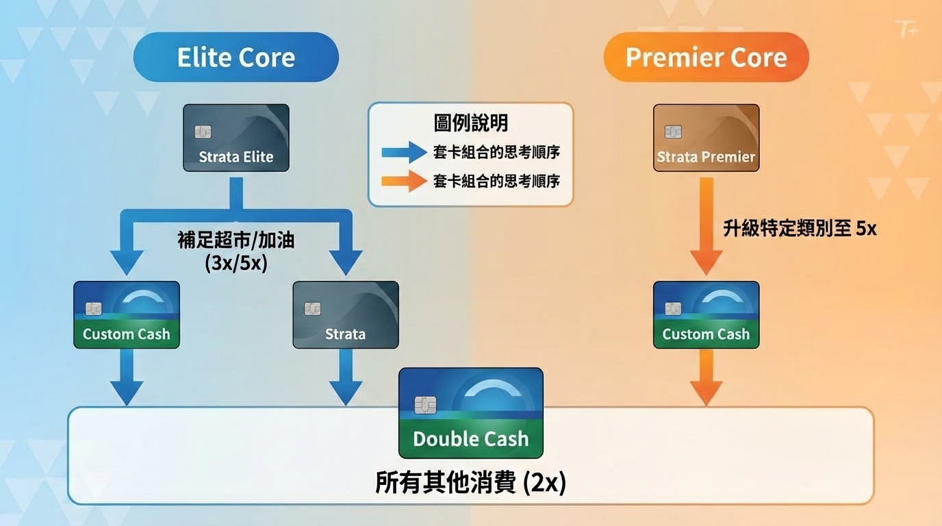 根據持有的花旗銀行ThankYou Rewards「核心」轉點信用卡,搭配策略應有所調整: