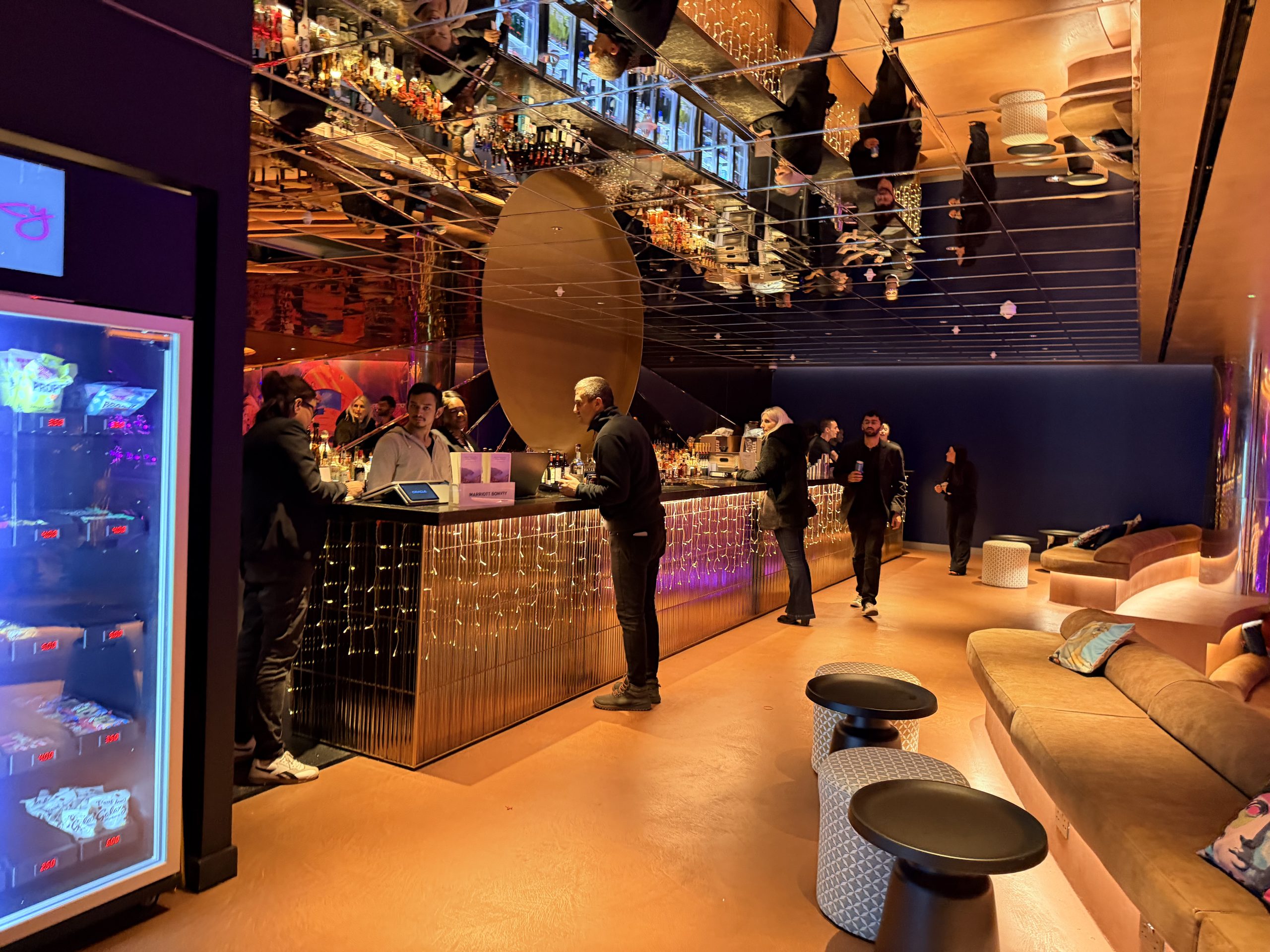 酒店內有很多地方陳列藝術品,而鏡面的天花板讓整個空間更有趣了