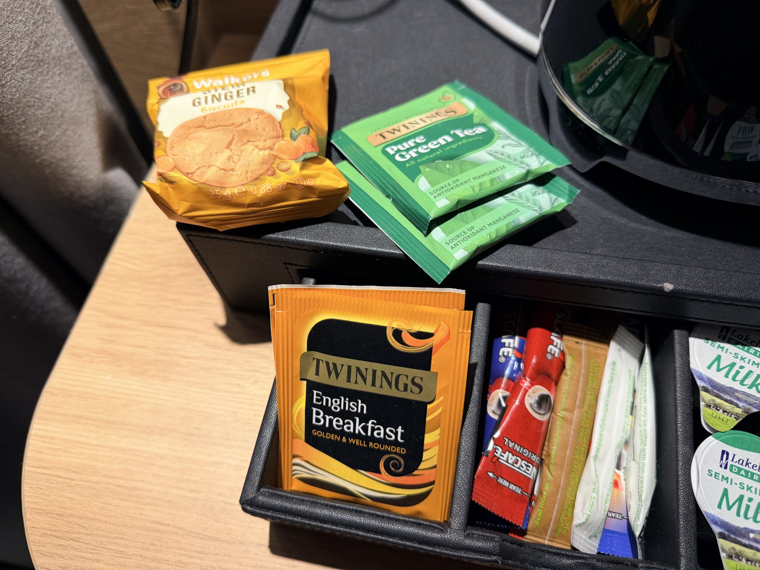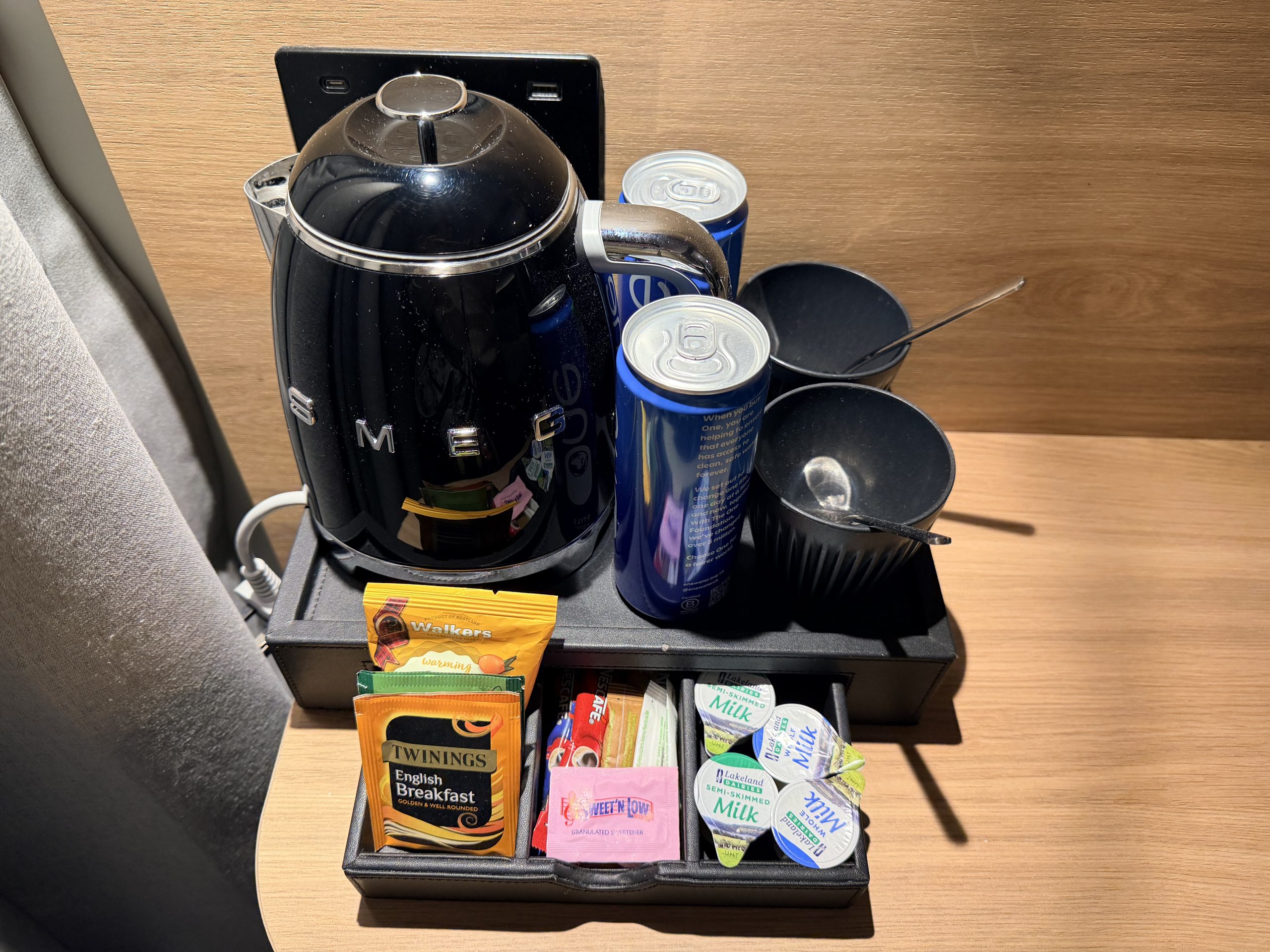 桌上的Minibar,有提供罐裝水與茶包/咖啡包