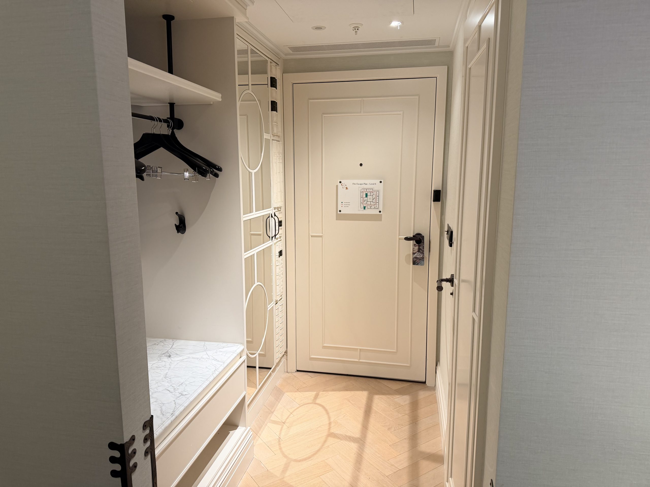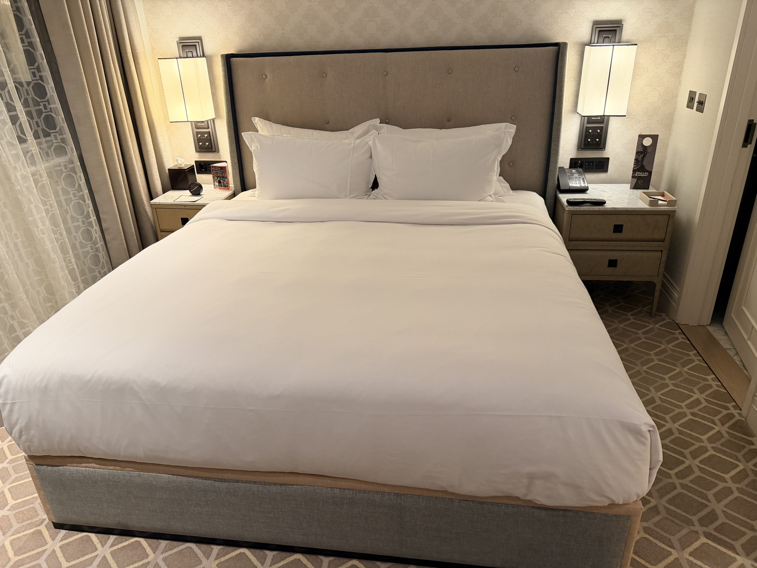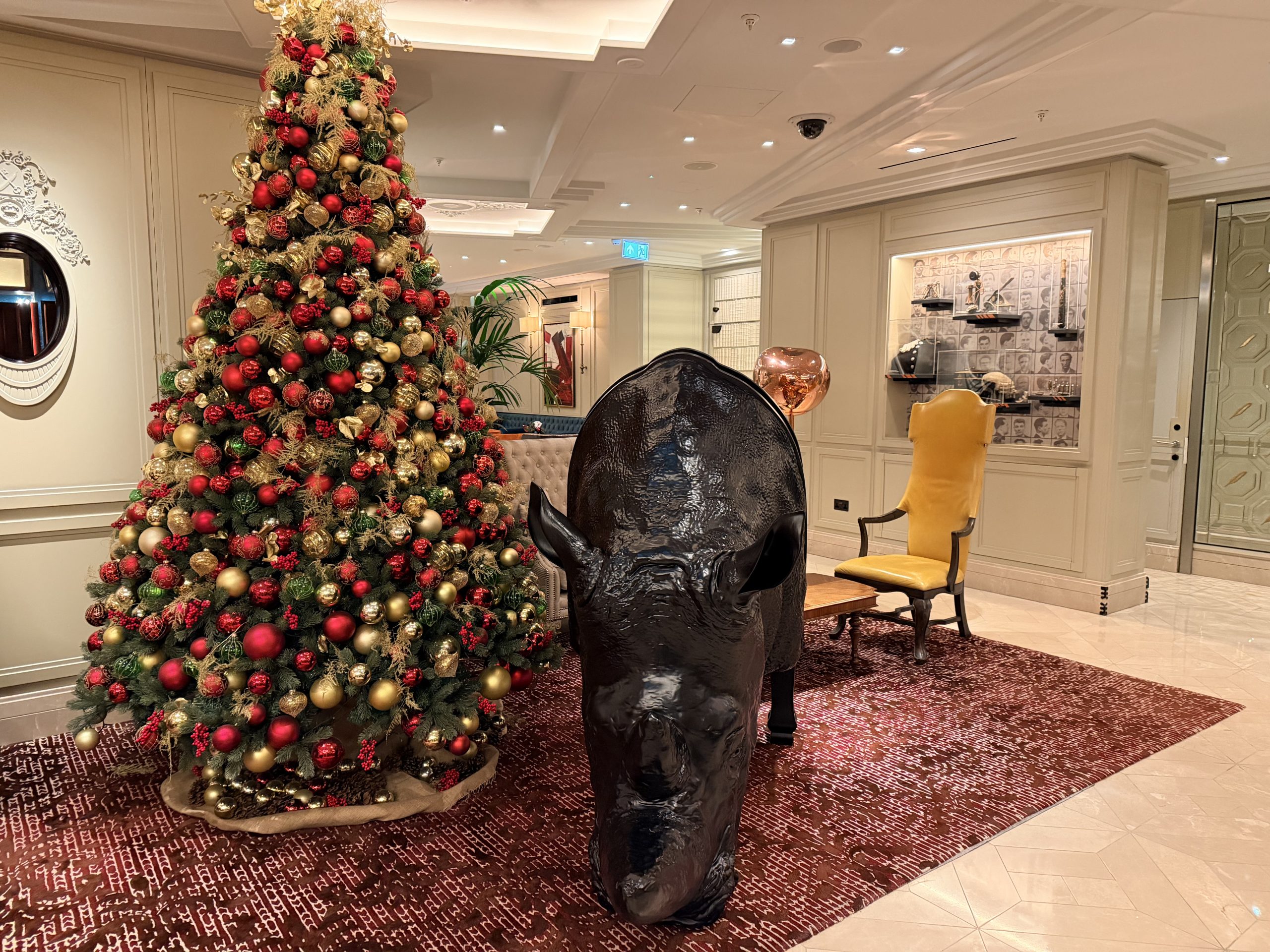 酒店大廳巧妙地融入了現代裝置藝術,當代家具與精選藝術品,配合經典英倫風格,創造出一種「經典與前衛對話」的獨特氛圍。辦理入住的當下,或許是一時服務人員太忙,因此除了沒有人幫我拿行李之外,也沒有招待我辦理入住手續,讓我站在那裏一時半刻後才被接待。但是辦理入住手續時,還是能感受到英式禮賓的態度,而且最後要退房時,服務超好到令人動容,因為酒店周遭為了新年遊行的關係,實施交通管制,所有的車子都進不來,必須走到國家美術館旁,才有辦法叫車離開,酒店方面因此還專門找服務人員幫忙拉著行李,並且陪伴我們一行人一路走到國家美術館,最後看著我們上車之後才離開,算是給了我們2026年開始的滿滿祝福與溫暖。