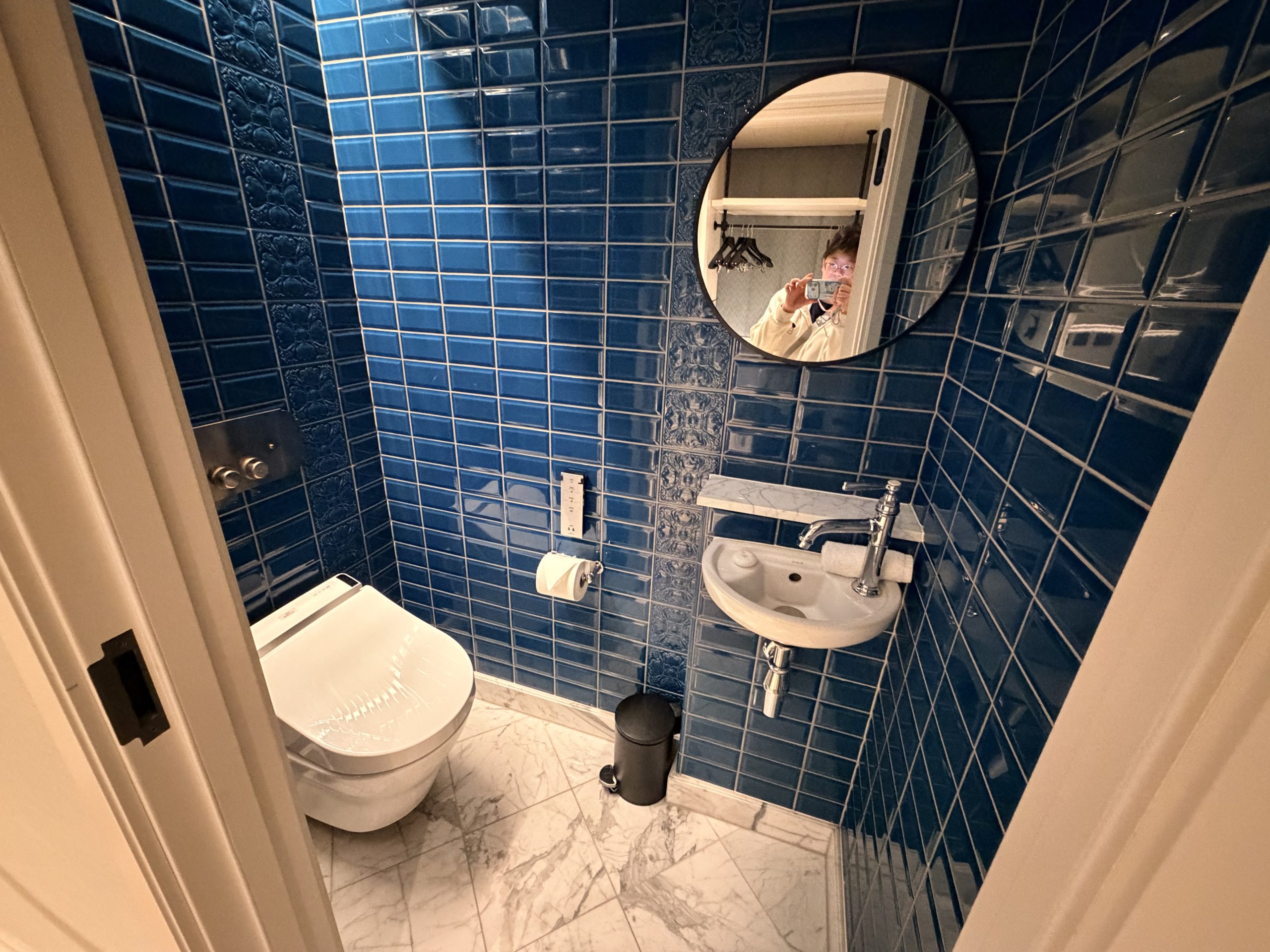 廁所也在門口,居然是使用「TOTO」品牌的免治馬桶