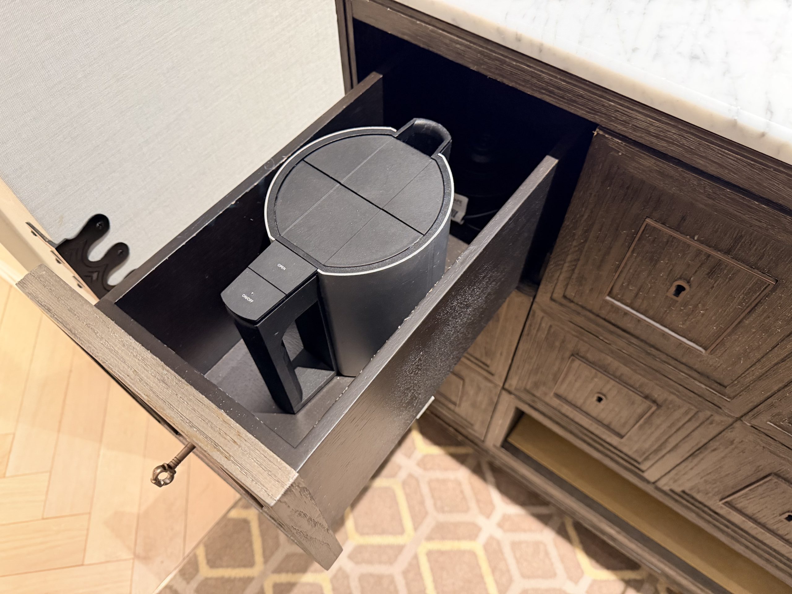 抽屜裡塞了一個電熱水壺
