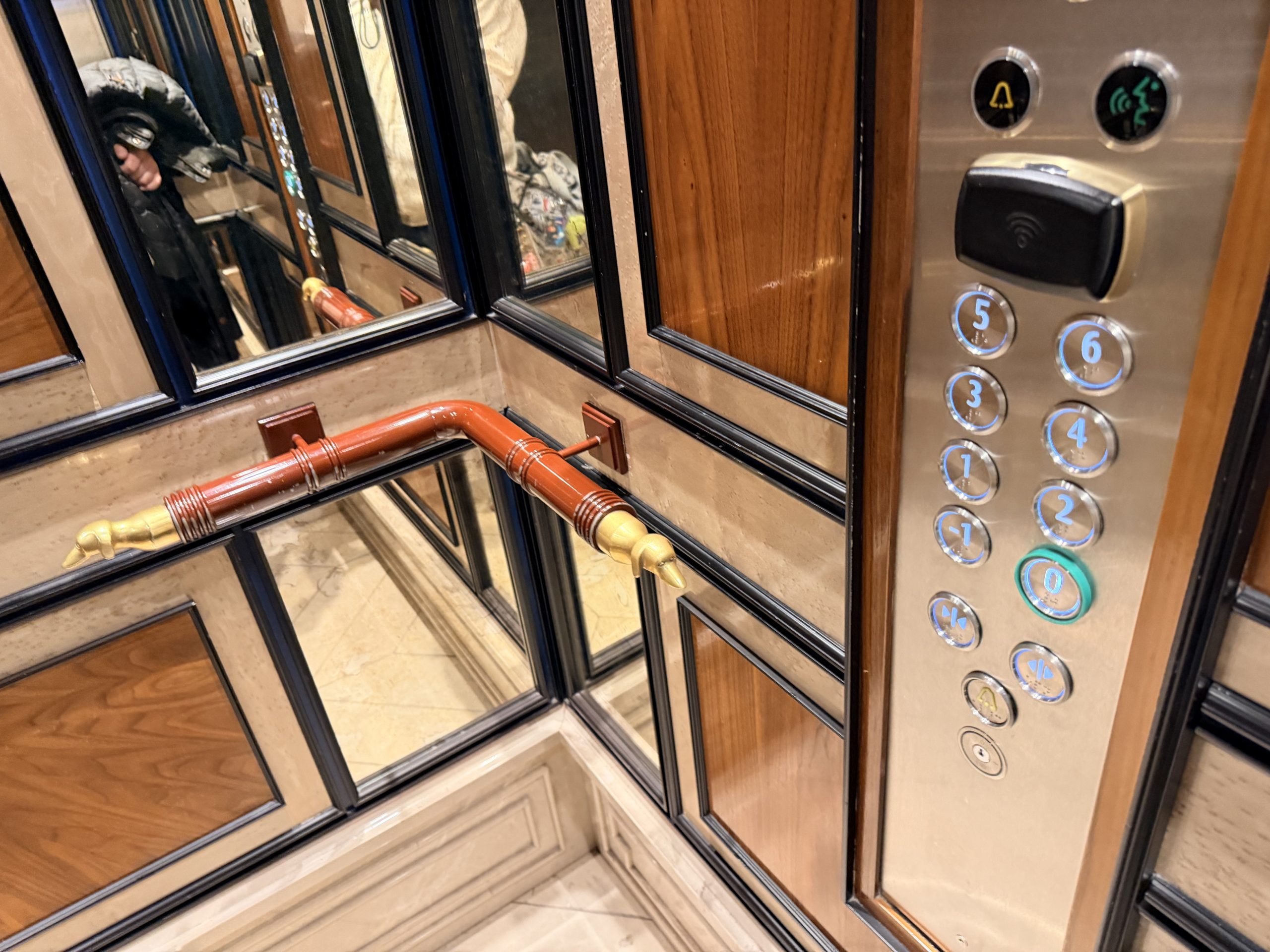 電梯裡面的扶手造型,是電影裡常看到的倫敦警犬-米格魯