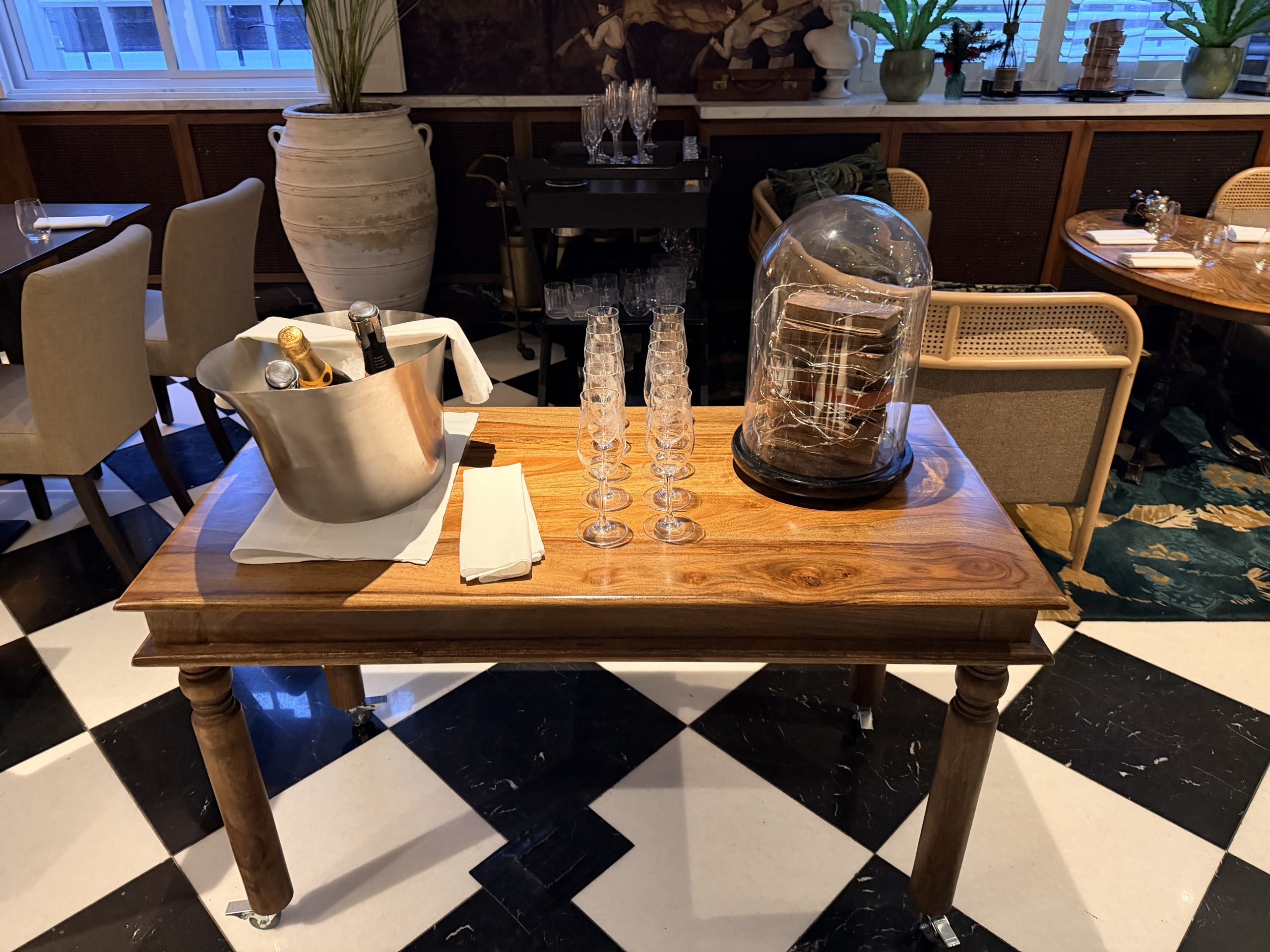 這間是位於大廳的酒吧,「The 40 Elephants」這個名字,源自倫敦歷史上一個真實存在的女性竊盜集團,結合了地名,數量象徵與傳奇故事,如今被重新包裝為一種帶點叛逆、女性力量與倫敦歷史底蘊的文化符號。