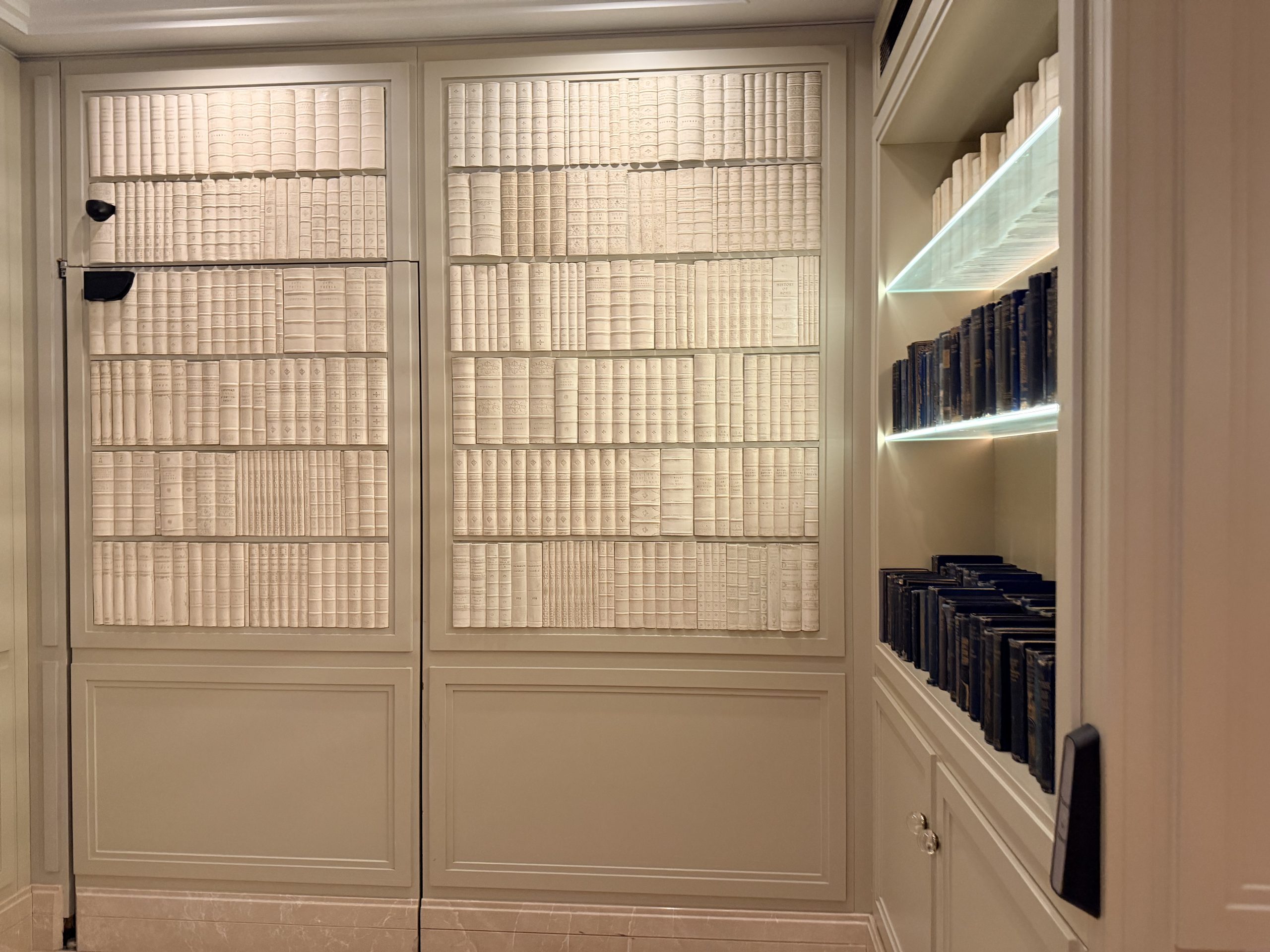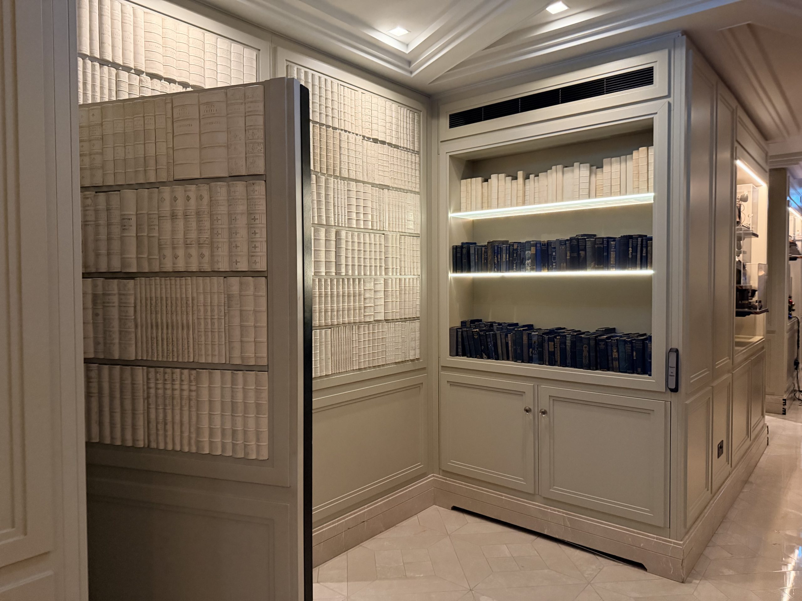 位於大廳內一個平平無奇的「假書櫃」牆