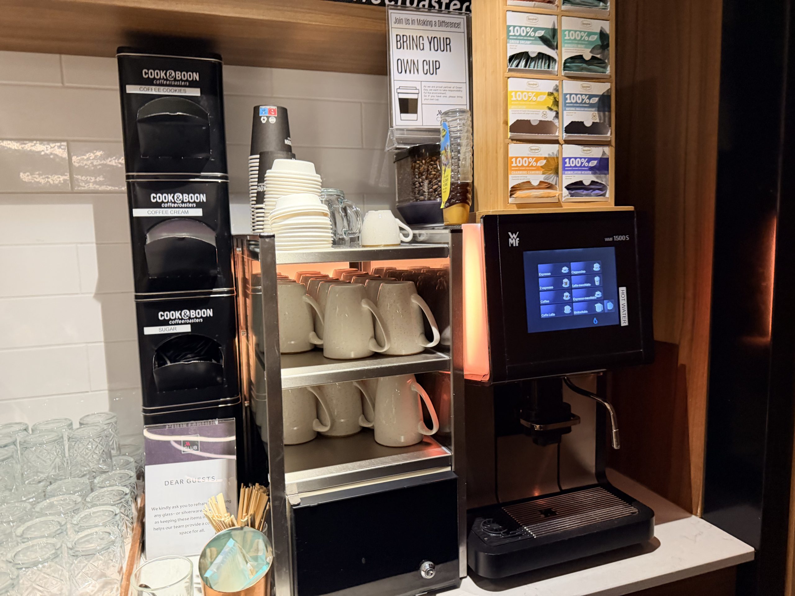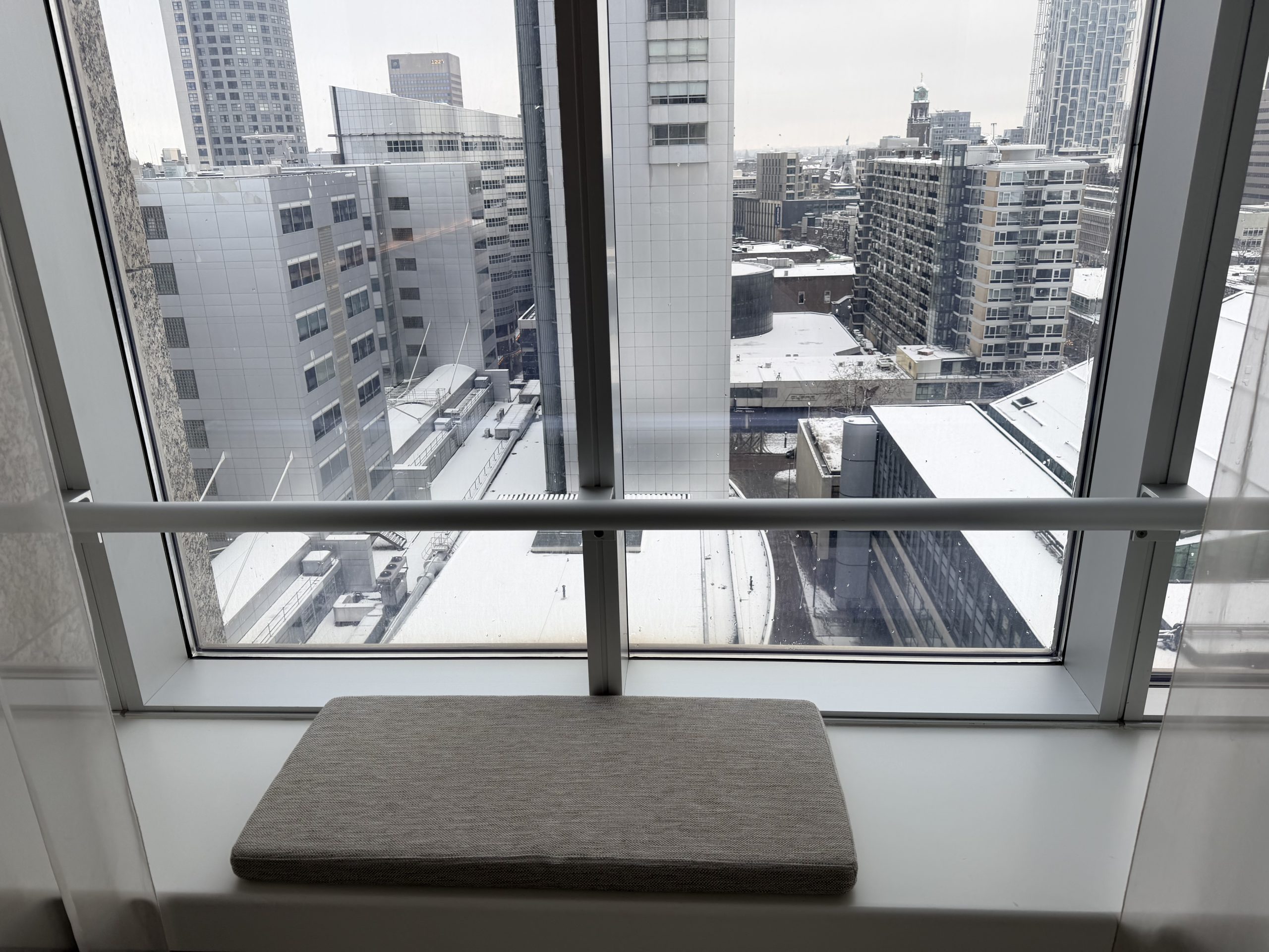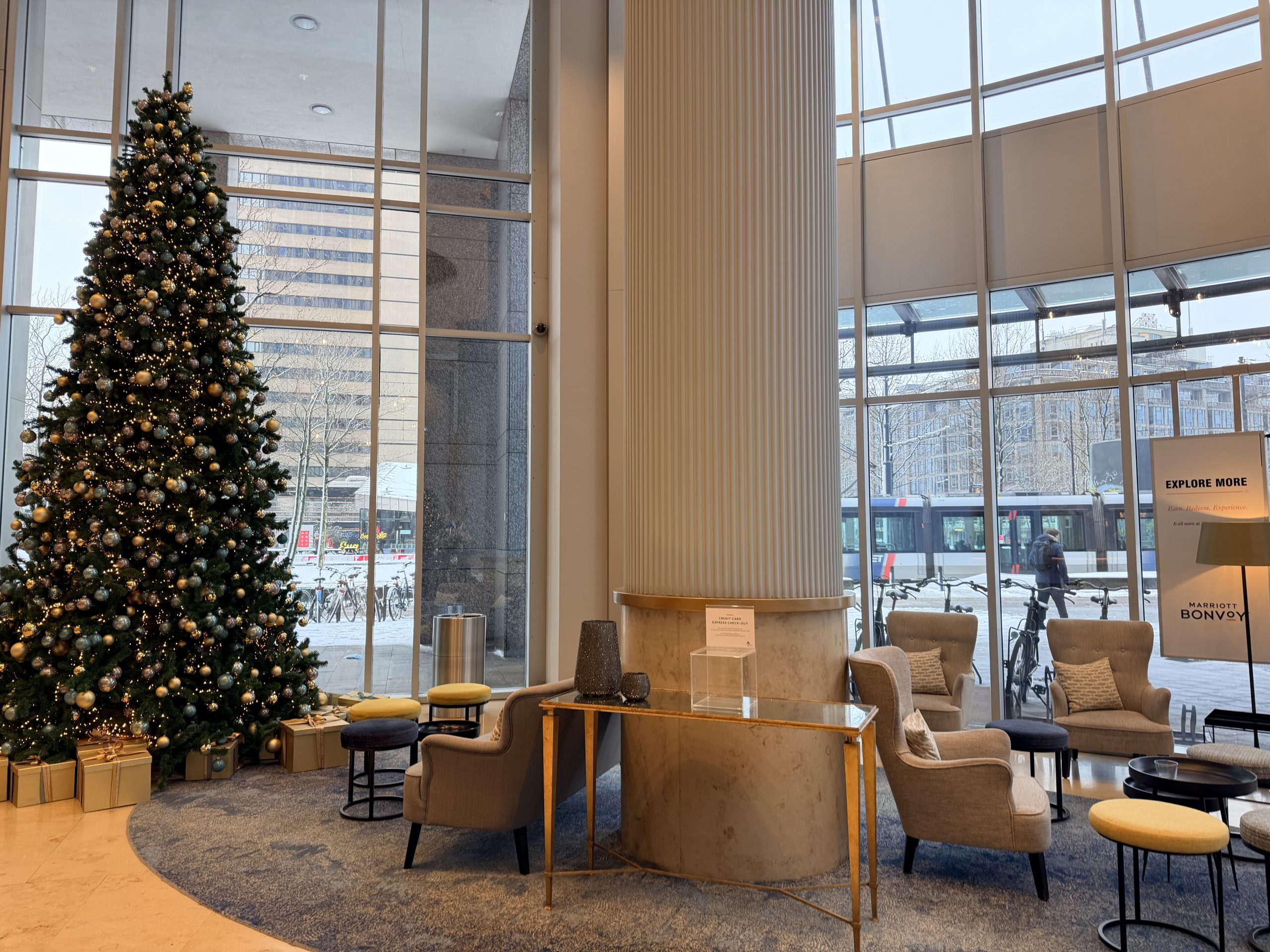 這間酒店當晚入住的價格,只要125歐元左右,若是使用萬豪集團點數兌換的話,單晚需要45,000點左右,老實說使用點數兌換並不是很划算。從火車站抵達酒店後,一推開旋轉門時,大廳內的溫暖氣氛立刻裹住全身,櫃台的服務人員主動開口打招呼,並迅速地幫我辦理好入住手續,前段難熬的冰寒感覺,瞬間一掃而空。而隔天因為暴風雪所造成的火車營運狀況頻傳,有些火車班次不時因為各種原因停駛,或者維修延宕,發車時間一改再改的時候,這間酒店的位置完全展現其得天獨厚的地理之便,加上持有萬豪集團白金會籍 (Platinum Elite) 可獲得的延遲至下午四點退房的福利,讓我可以在酷寒的大雪天,躲在溫暖的房間裡確認火車的狀況,在確認有火車可以搭之後,才從從容容地從酒店出發。