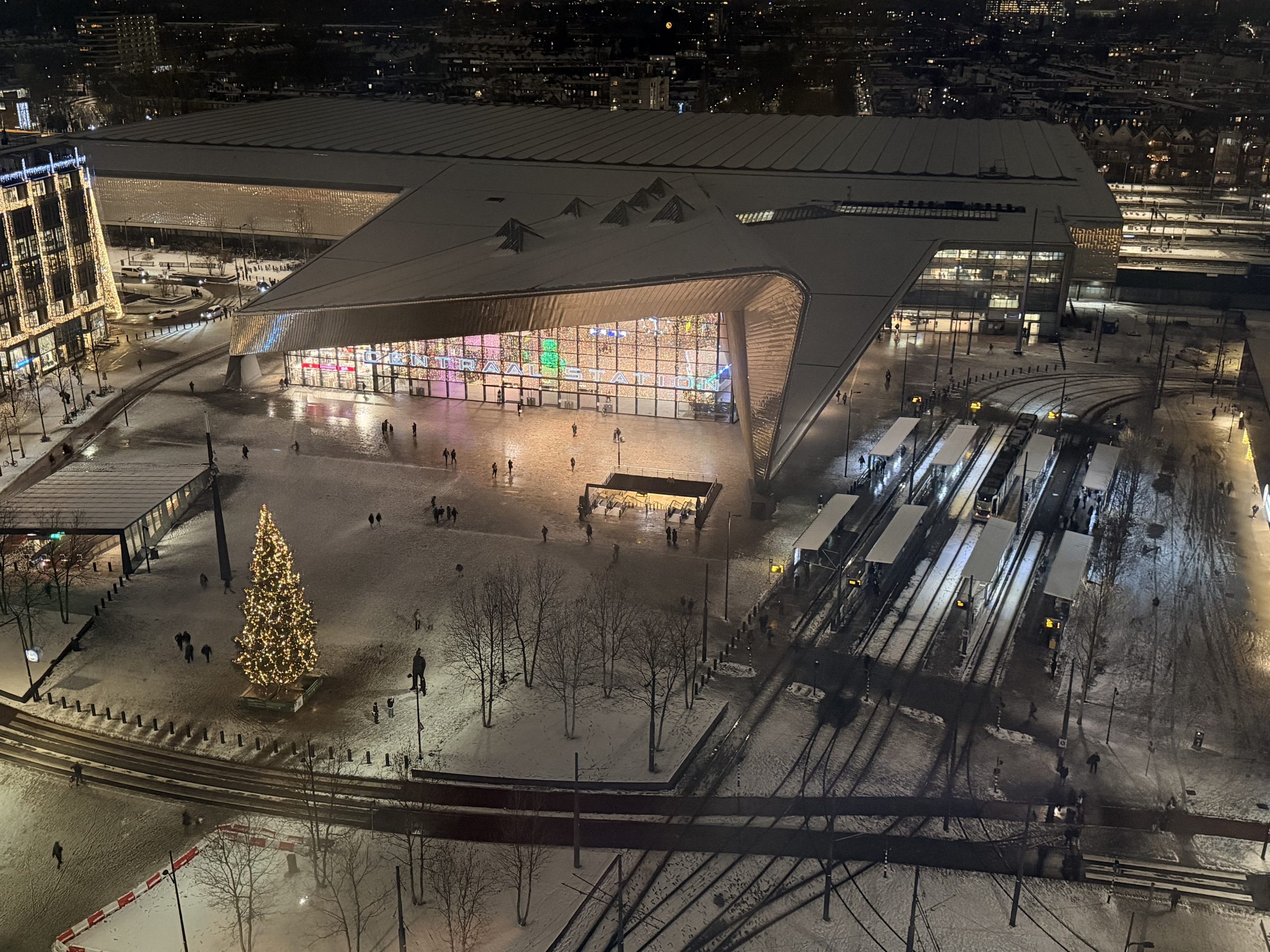 從酒店徒步出發,幾乎所有鹿特丹市內的精華景點,都在步行可到達的範圍之內,門口就是中央車站,步行約十五分鐘左右,就可到達「Markthal」市集大廳,是一個以大膽彩繪穹頂聞名的室內市場,若是往南走的話,則可抵達荷蘭建築師-Piet Blom的奇想傑作「方塊屋」(Kubuswoningen),著名的「伊拉斯謨橋」(Erasmusbrug) 也在不遠處,只可惜這次遇到的大風雪,真的讓人很不想出門,所以無緣造訪而只能錯過。若下次還有機會,一定要再次造訪鹿特丹,而這間酒店也仍會是我的住宿首選。