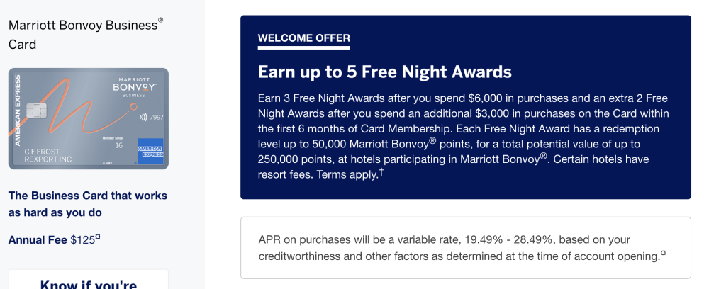 Marriott Bonvoy Business American Express Card (曾用名 Starwood Preferred Guest Business Credit Card from American Express) 商业信用卡简介 【2021.9 更新】今天此卡出了新的开卡奖励:开卡3个月内消费满 $5000 可以获得 125k 万豪点数,同时送2张 Free Night...Read more The post AmEx Marriott Bonvoy Business 商业信用卡【20…